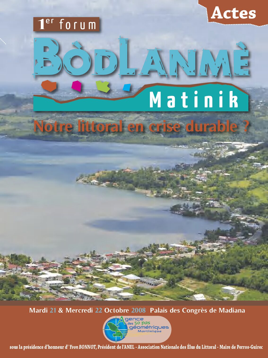 Les actes du 1er forum Bodlanmè qui s’est déroulé du 21 au 22 octobre 2008 au Palais des Congrès de Madiana en Martinique, sous la présidence d’honneur d’Yvon BONNOT, Président de l’ANEL (Association Nationale des Élus du Littoral) – Maire de Perros-Guirec.