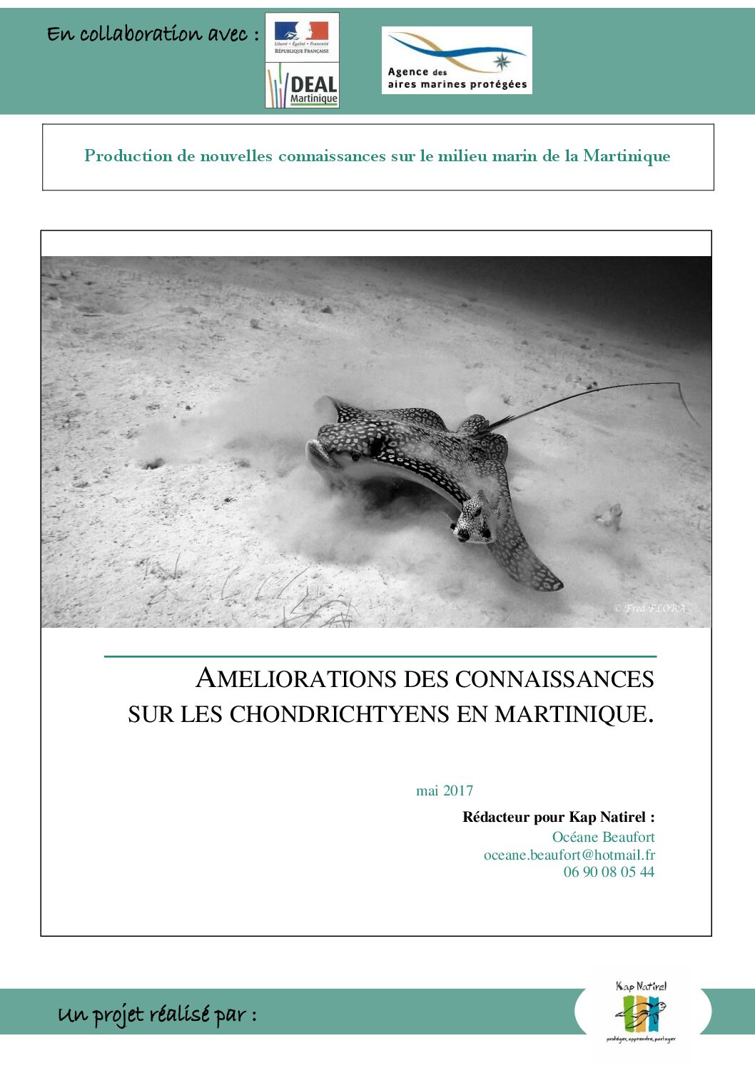Le manque de connaissances sur les populations de chondrichtyens des Antilles françaises est un frein au développement d’actions locales pour la protection et la conservation des populations. Depuis 2013, l’association Kap Natirel, en charge de la coordination du Réseau requins des Antilles françaises (Reguar), développe des projets pour acquérir de nouvelles informations sur ces animaux. Suite à un intérêt particulier porté par la Direction de l’Environnement, de l’Aménagement et du Logement (DEAL) de Martinique sur les chondrichtyens, l’association Kap Natirel a proposé en 2015 un projet dans le but de recueillir et de valoriser les données existantes sur cette classe (chondrichtyens) en Martinique. Ce projet a été déposé dans le cadre du programme de productions de nouvelles connaissances sur le milieu marin de la Martinique (Aquimart) s’inscrivant dans la mission d’étude pour la création d’un parc naturel marin en Martinique (porté par l’Agence des Aires Marines Protégées, AAMP et la DEAL Martinique).