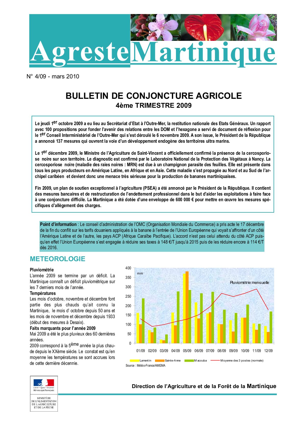 Bulletin de conjoncture agricole – 4ème trimestre 2009