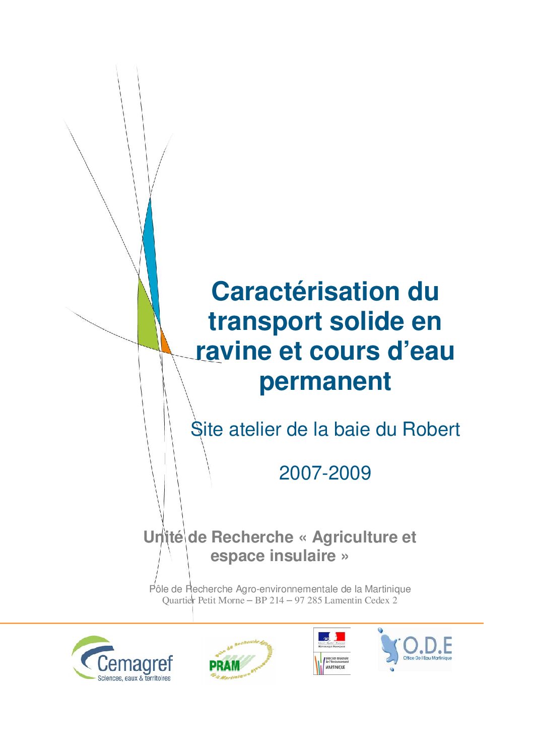 C’est pourquoi le Cemagref-PRAM, UR Aema, en partenariat avec la ville du Robert, l’Ifremer, la DIREN et l’Office de l’eau de la Martinique a entrepris un programme d’évaluation du transport solide depuis la partie terrestre de la baie du Robert, constituée de versants montagneux de petite dimension, vers la baie.