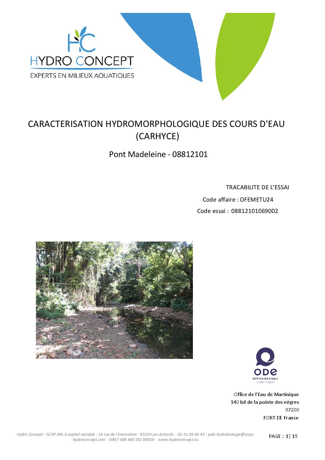 Caractérisation hydromorphologique des cours d'eau (CarHyCE) – Pont Madeleine