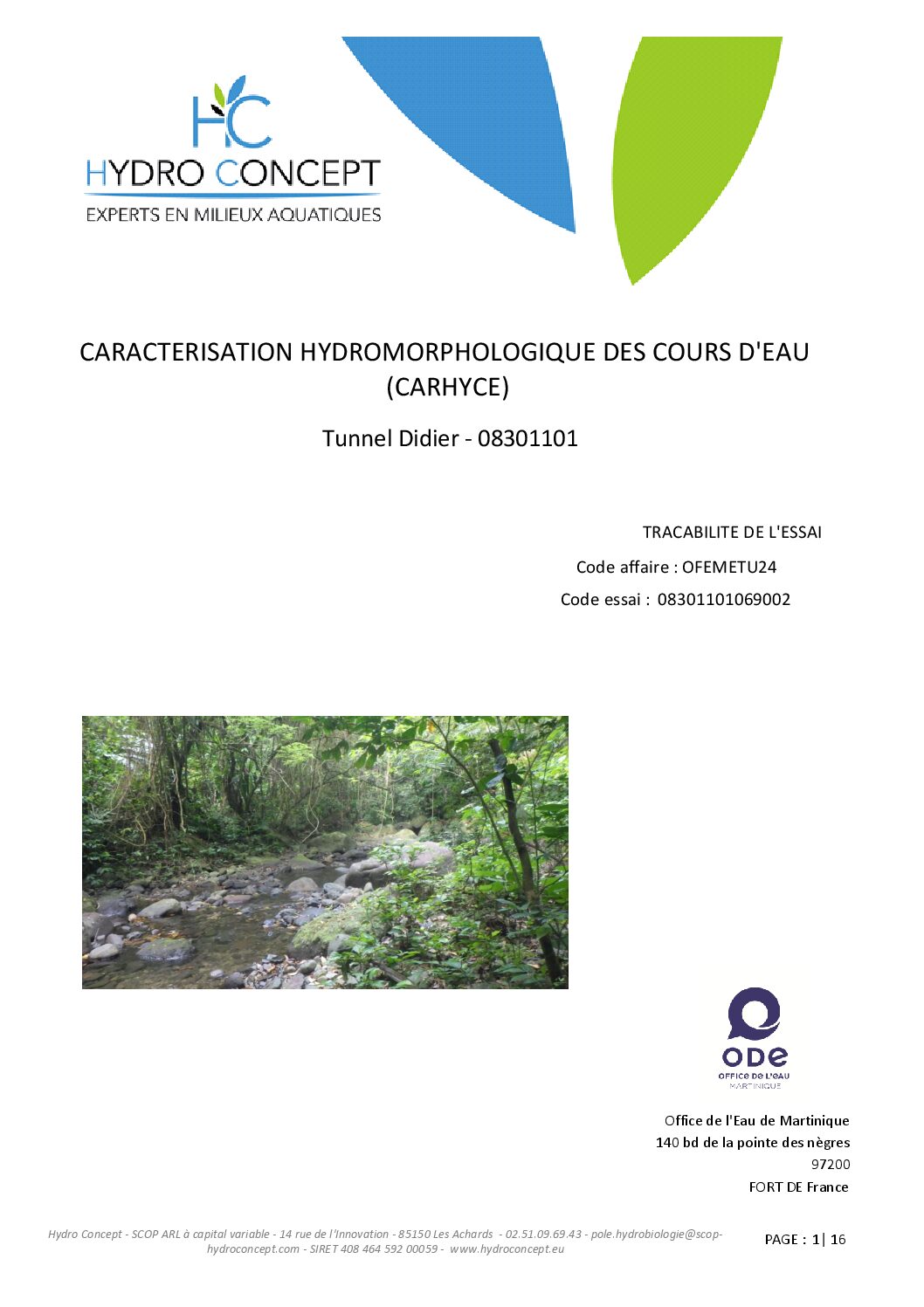 Caractérisation hydromorphologique des cours d'eau (CarHyCE) – Tunnel Didier