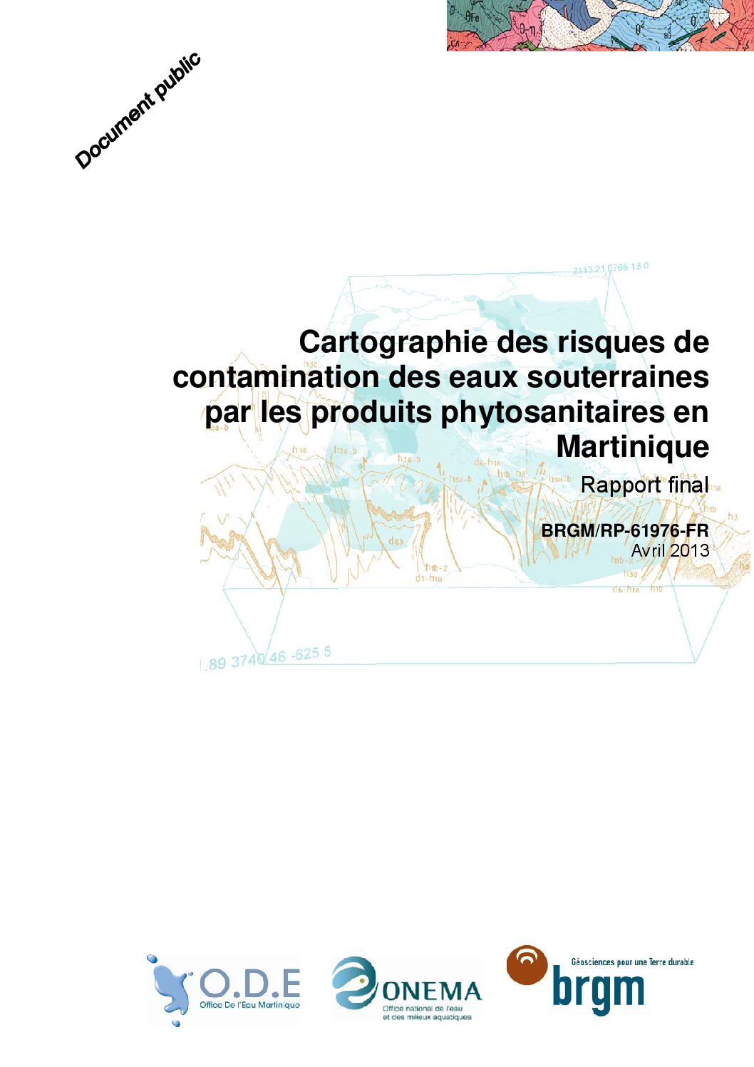 Dans la continuité de l’étude menée en 2006-2008 en partenariat avec la Région Martinique sur les processus de transferts de produits phytosanitaires vers le sous-sol, l’ODE et la DEAL Martinique ont confié au BRGM une étude visant à évaluer le risque de contamination des eaux souterraines par différents produits phytosanitaires, actuellement utilisés en Martinique ou à usage historique.