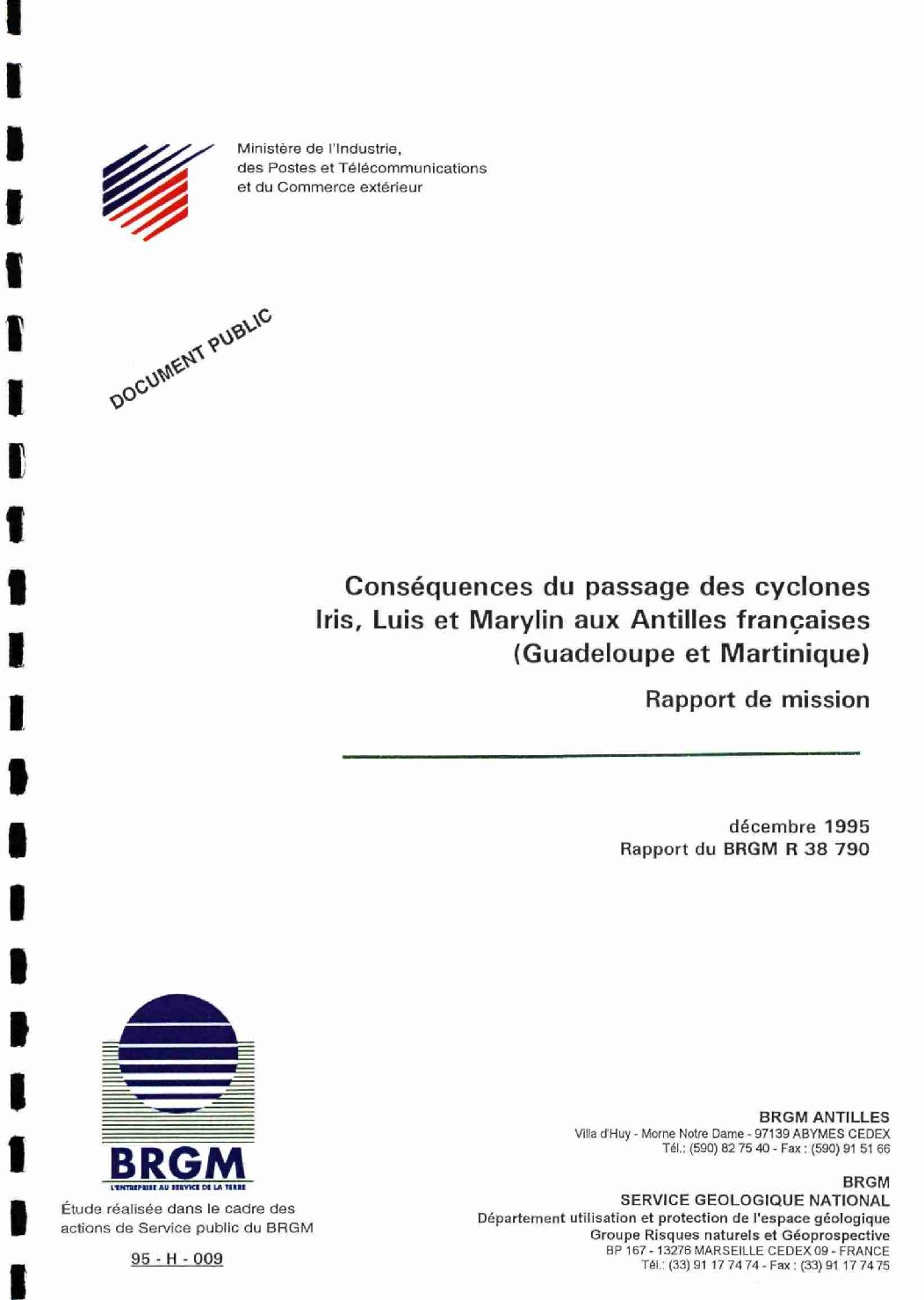Après le passage de la tempête tropicale IRIS en Martinique et de l’ouragan LUIS en Guadeloupe, le BRGM a souhaité faire un premier inventaire des dégâts provoqués par les phénomènes d’inondations, de marée de tempête et houles cycloniques, et de mouvements de terrain. L’objectif de cet inventaire est de confronter les observations avec les différentes cartes d’aléa déjà réalisées aux Antilles. Pour la Guadeloupe. Il s’agit principalement des atlas communaux des risques naturels. Des cartes d’aléa mouvements de terrain ont également été réalisées sur l’ensemble des Antilles françaises dans le cadre des conventions de recherche avec les régions. Enfin, en Martinique, une évaluation de l’aléa mouvements de terrain est en cours de réalisation pour le ‘PER’ de Fort de France. Lamentin et Schoelcher.
