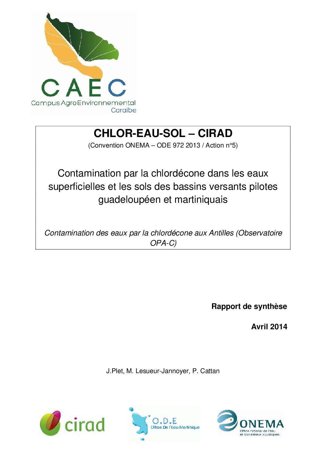 Néanmoins il est nécessaire d’approfondir ces premiers travaux en orientant les études futures, plus fines à mener sur les mécanismes de transfert de la chlordécone et en précisant les dispositifs à installer sur chaque bassin. La convention entre le CIRAD et les Offices De l’Eau (ODE) qui ont notamment pour mission l’étude et le suivi des ressources en eau, consiste à soutenir et mener à bien ces travaux.