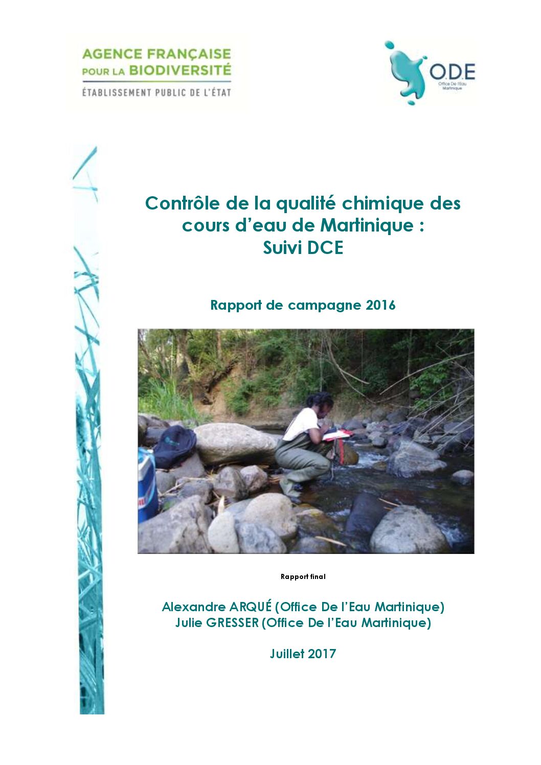 L’objet de ce rapport est de présenter les résultats du programme de surveillance de la qualité chimique des cours d’eau mis en œuvre en 2016 par l’Office De l’Eau de la Martinique (ODE) en partenariat avec l’ONEMA (devenue Agence Française pour la Biodiversité depuis le 1erjanvier 2017).