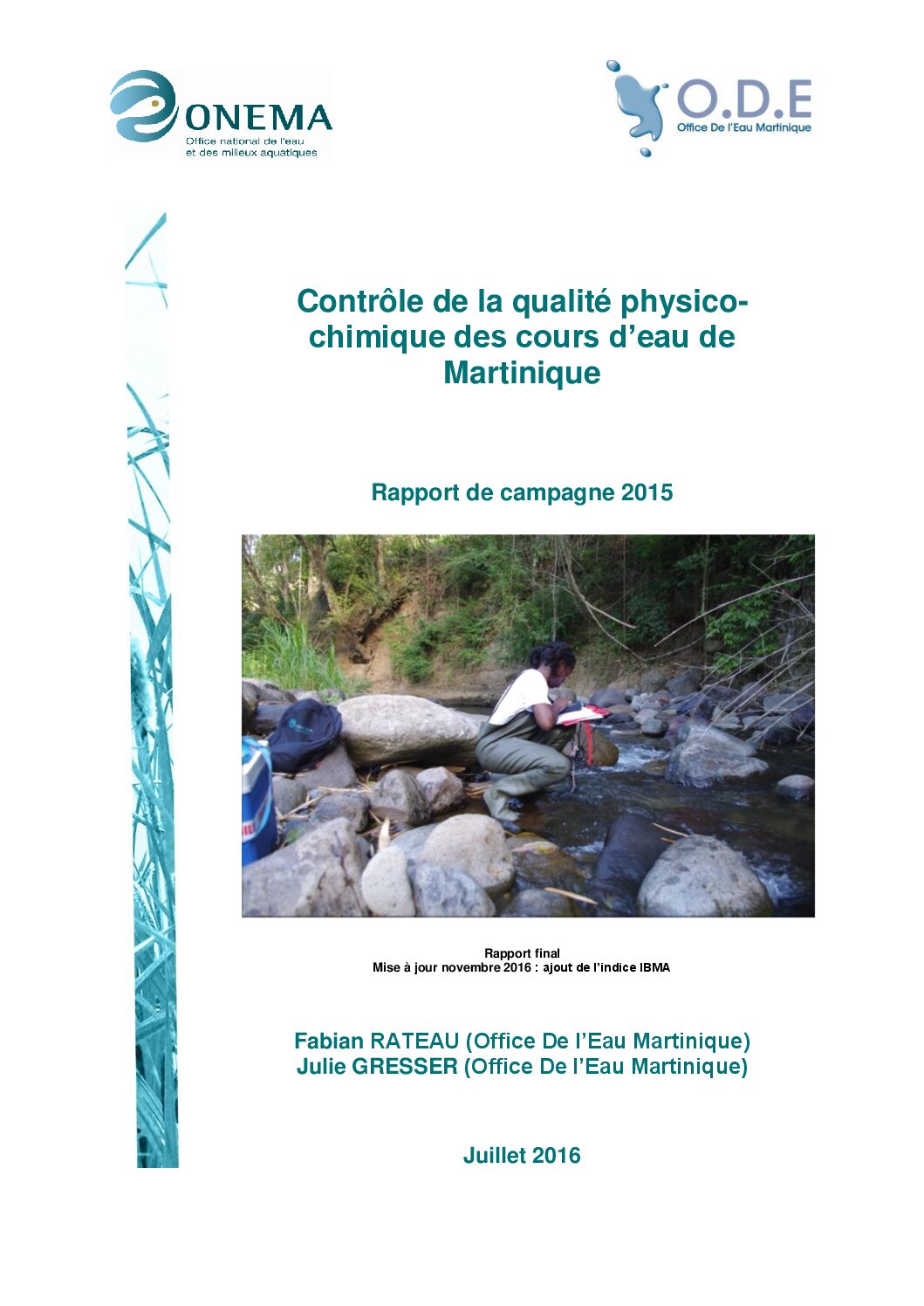 L’objet de ce rapport est de présenter les résultats du programme de surveillance de la qualité physico-chimique des cours d’eau mis en œuvre en 2015 par l’Office De l’Eau de la Martinique (ODE) en partenariat avec l’ONEMA.