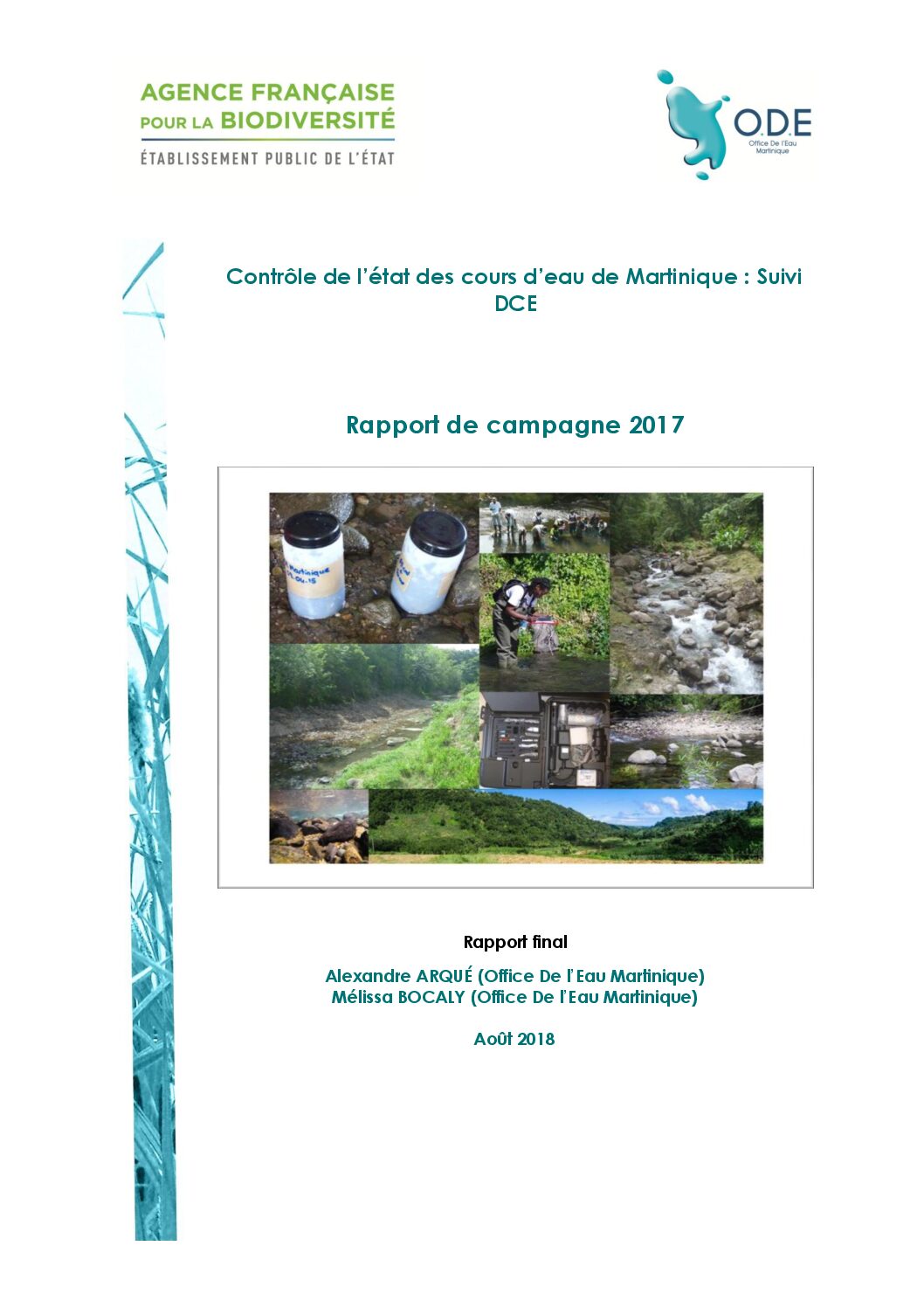 Ce rapport a pour objet la présentation des données chimiques et écologiques acquises par l’Office De l’Eau dans le cadre du suivi des eaux continentales de surface imposé par la DCE pour l’année 2017.