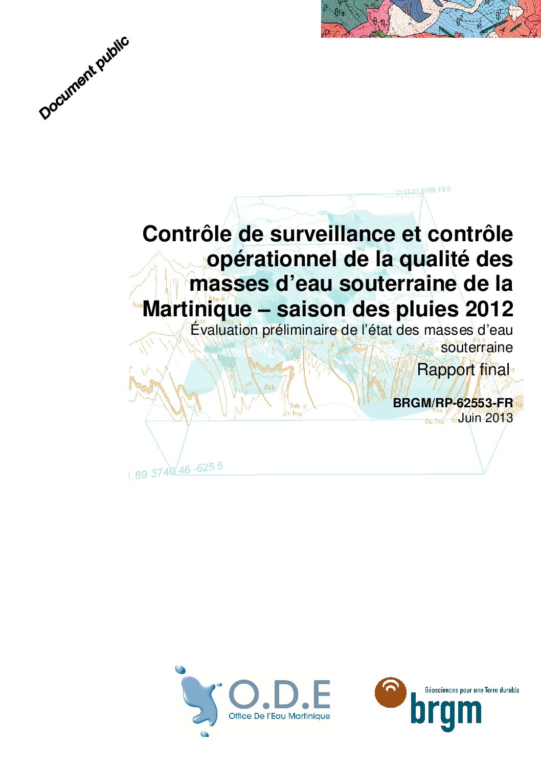 L’Office de l’Eau (ODE) de Martinique, la Direction de l’Environnement, de l’Aménagement et du Logement de la Martinique (DEAL) et le BRGM pour l’année 2007, puis l’ODE et le BRGM pour les années suivantes ont cofinancé un programme de surveillance de 20 points basé sur deux campagnes de mesures (saison sèche et saison des pluies).