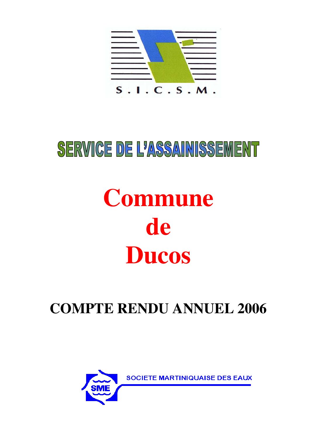 Le Compte Rendu Technique annuel du service public d’assainissement de la commune de Ducos, exercice 2006.