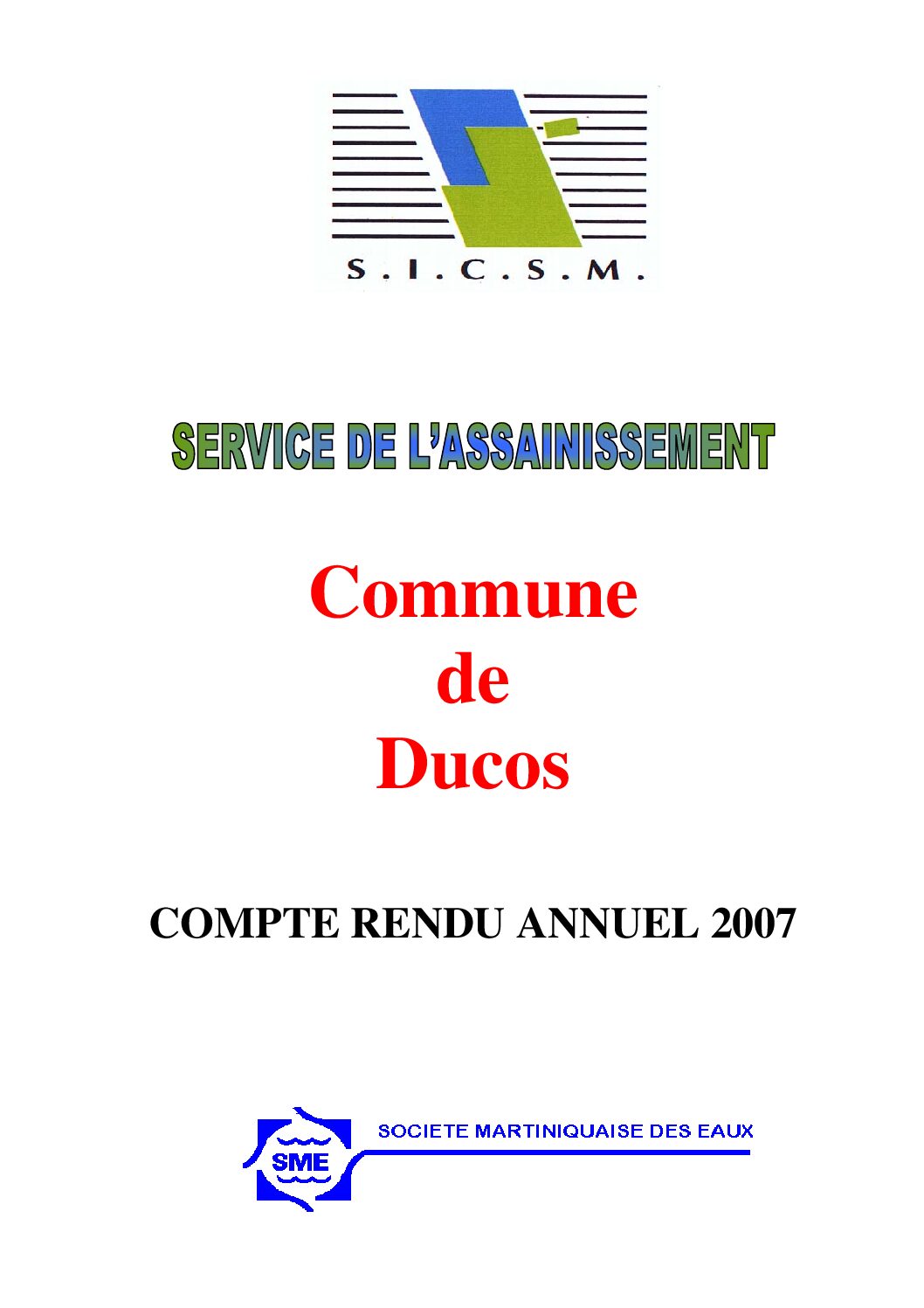 Le Compte Rendu Technique annuel du service public d’assainissement de la commune de Ducos, exercice 2007.