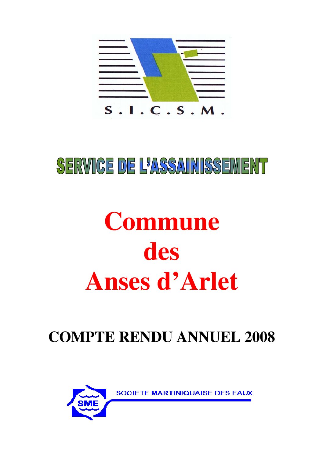 Le Compte Rendu Technique annuel du service public d’assainissement de la commune des Anses d’Arlets, exercice 2008.
