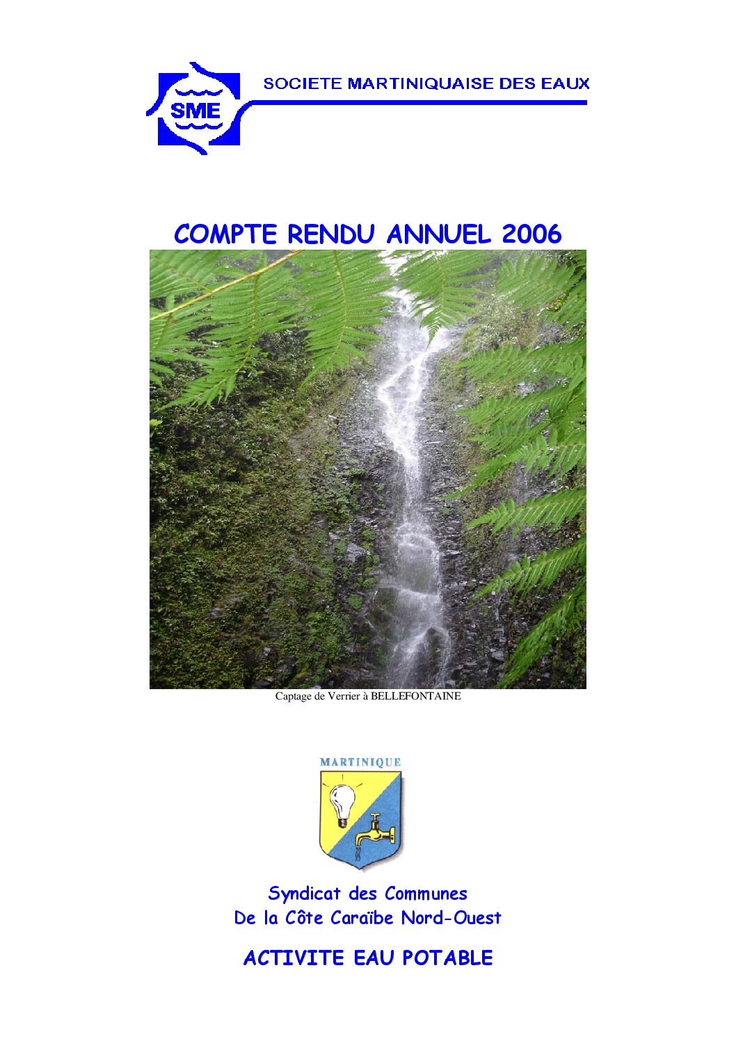 Le Compte Rendu Technique annuel du service public d’alimentation en eau potable du SCCCNO (Syndicat des Communes de la Côte Caraïbe Nord-Ouest) pour l’année 2006.