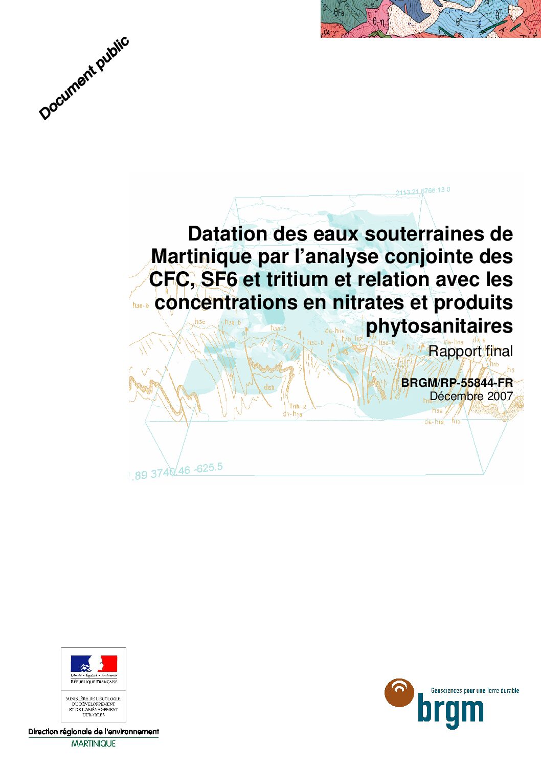 Ce projet novateur financé par la DIREN et le BRGM a permis l’amélioration des connaissances des eaux souterraines de Martinique en relation avec la contamination des eaux en nitrates et produits phytosanitaires. Cette connaissance reste toutefois incomplète et la datation des eaux à plusieurs périodes de l’année et un couplage avec une étude des pratiques agricoles passées et une amélioration de la connaissance précise du contexte géologique, hydrogéologique et pédologique de chaque site (et de son bassin versant) est toutefois nécessaire pour apporter des éléments probants quant aux modes et temps de transferts des éléments dissous dans la zone non saturée et saturée en Martinique.