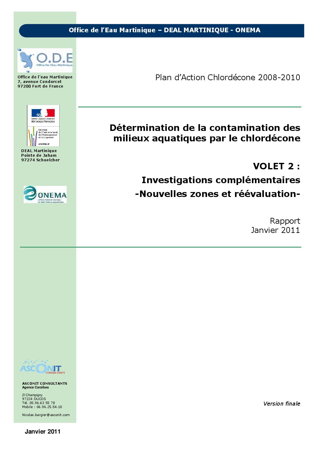 Cette étude de détermination de la contamination des milieux aquatiques par le chlordécone a été réalisée dans le cadre du plan d’action chlordécone 2008-2010.