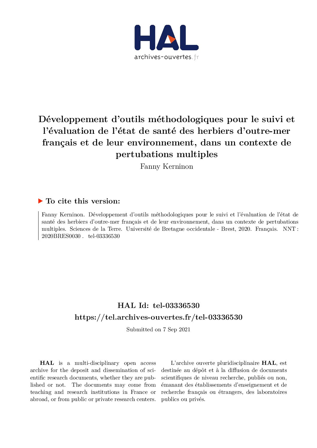 Cette action nationale « Herbiers Ifrecor-DCE », débutée en 2017, s’inscrit ainsi dans une démarche intégrative et concertée, au plus près des attentes concrètes des acteurs de terrain, des gestionnaires et des décideurs. Elle s’organise en deux grandes phases. Tout d’abord une phase de recherche et développement des outils méthodologiques dans le cadre de laquelle s’inscrit cette thèse (doctorat conseil), suivie d’une phase de validation, transfert opérationnel et valorisation de ces outils développés auprès des acteurs concernés au sein des différents territoires. Ce travail de recherche doctorale, vise ainsi à développer des outils méthodologiques pour le suivi et l’évaluation de l’état de santé des herbiers marins d’outre-mer et contribuer à l’évaluation de l’état des eaux côtières, dans un contexte de perturbations multiples (naturelles, anthropiques et climatiques). Ce projet a pour objectif de proposer des outils de gestion intégrés dans un objectif de mutualisation de la surveillance des herbiers d’outre-mer.