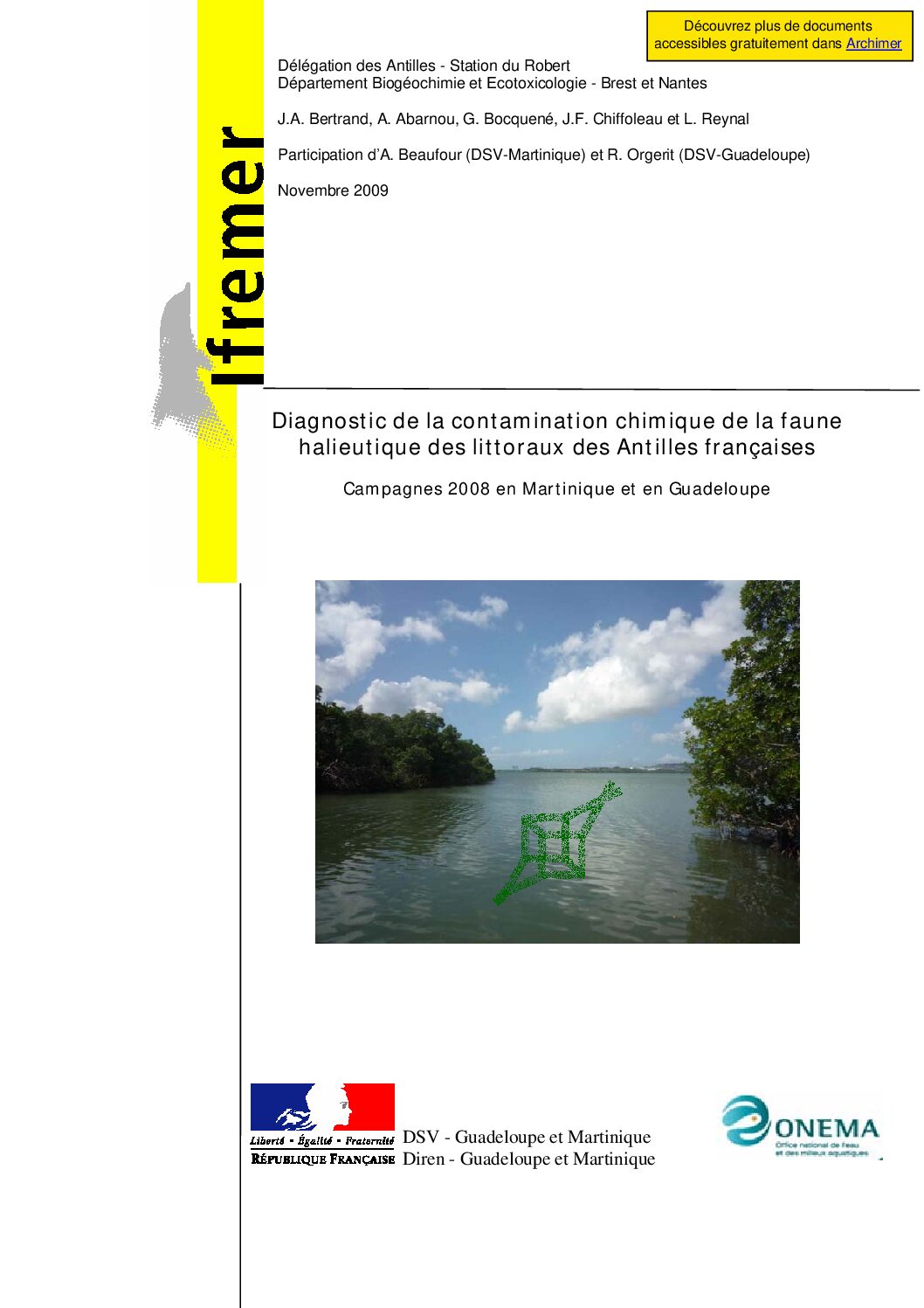 La présente étude visait à faire le point sur la contamination de la faune halieutique côtière des Antilles françaises quinze ans après l’interdiction d’usage de la molécule. En parallèle, une recherche systématique d’autres polluants chimiques a été effectuée sur des poissons et des crustacés ainsi que dans des sédiments autour de la Martinique.