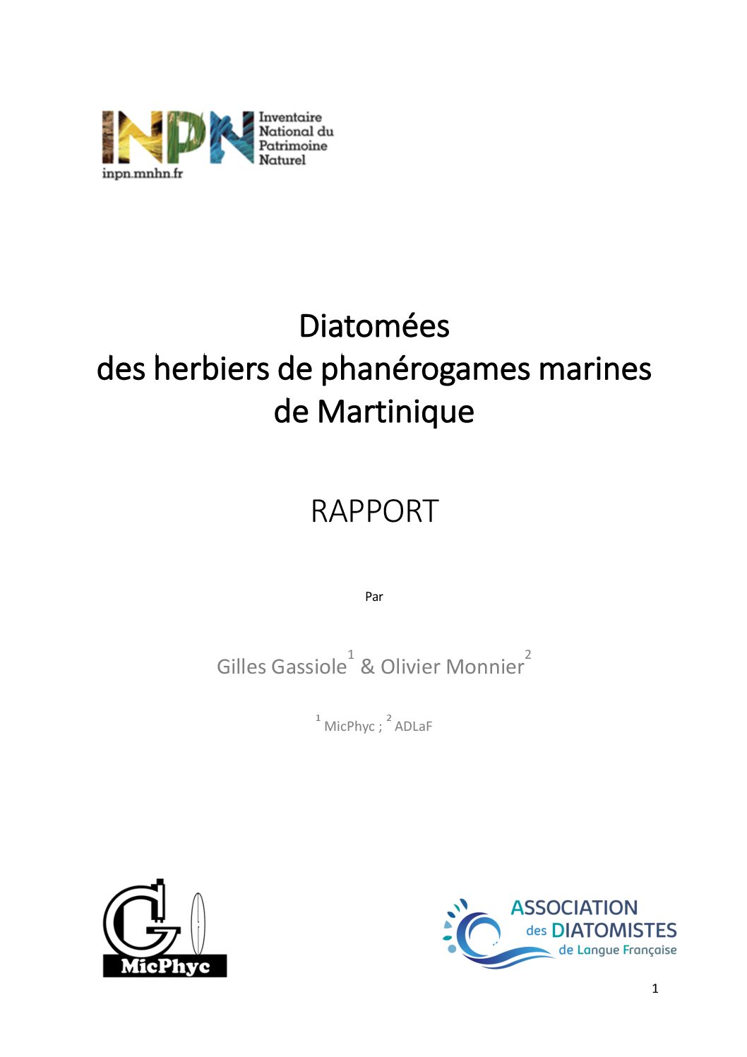 Peu d’études concernent les diatomées associées aux phanérogames marines (De Stefano et al. 2000, Mazzela et al. 1994, Corlett & Jones 2007, Hein et al. 2008). Elles constituent pourtant une source de nourriture importante pour certaines espèces de l’écosystème « herbier » (Heijs 1984, Uku 2005), comme la Grande Conche (Lobatus gigas), qui est une espèce protégée (Boman et al. 2019). En Martinique, si des travaux récents concernent les diatomées marines (Desrosiers et al. 2013, 2014a, 2014b, Riaux-Gobin et al. 2017, Kaleli et al. 2018, Loir & Gianfranco2014), aucune ne concerne les herbiers de phanérogames. Par ailleurs, l’INPN ne comprend aucune donnée diatomées sur les eaux marines de Martinique. Cette étude exploratoire permettra donc d’intégrer une première liste de données sur un phylum absent de l’INPN pour les eaux marines de Martinique. A l’occasion d’une campagne d’acquisition de données sur les herbiers de phanérogames marines de Martinique (Le Moal et al. 2015), neuf échantillons d’épiphyton ont été prélevés sur les feuilles des principales espèces de phanérogames, Thalassia testudinum, Syringodium filiforme et Halophila stipulacea. Dans ce rapport, les communautés de diatomées sont analysées afin d’établir la liste des espèces et de dégager une typologie des assemblages. Toutes les données taxinomiques produites sont géoréférencées pour permettre leur inclusion à l’INPN. Par ailleurs, ces données ont commencé à être valorisées à l’occasion d’une communication orale au colloque de l’Association des diatomistes de langue française (ADLaF), à Limoges en septembre 2024 (Annexe 1), et un article est en préparation pour les actes du colloque, à paraitre dans BotanyLetters.