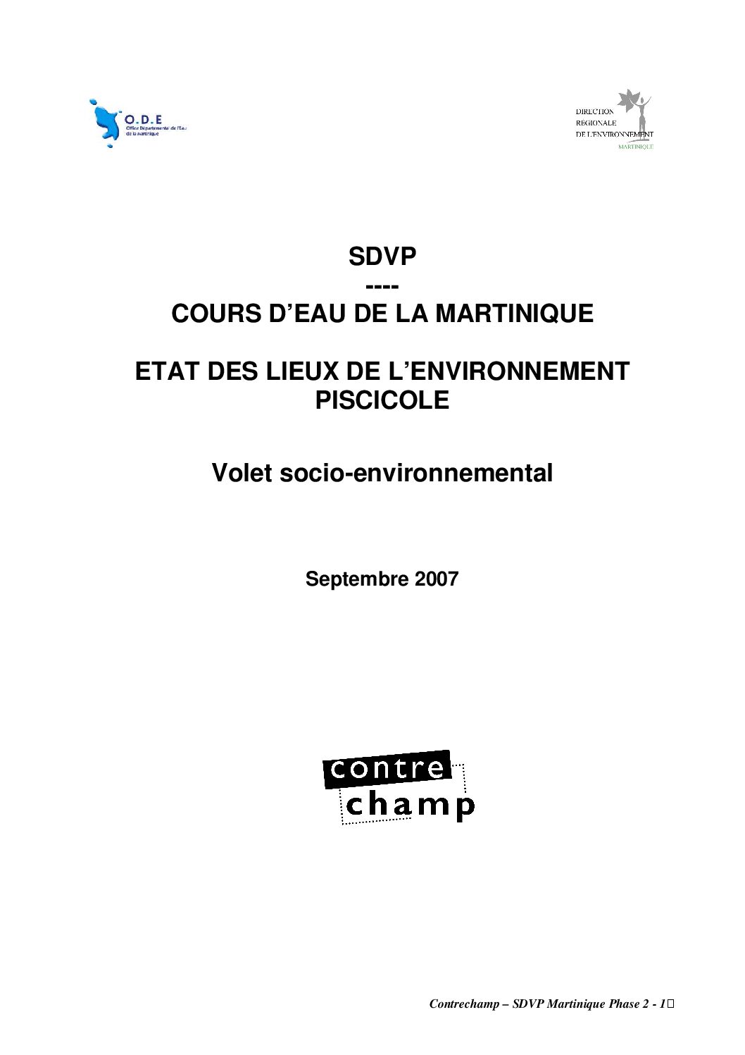 L’étude portant sur l’état des lieux de l’environnement piscicole des cours d’eau de La Martinique doit servir de base à la réalisation du Schéma Départemental de Vocations Piscicoles. Ce schéma a pour