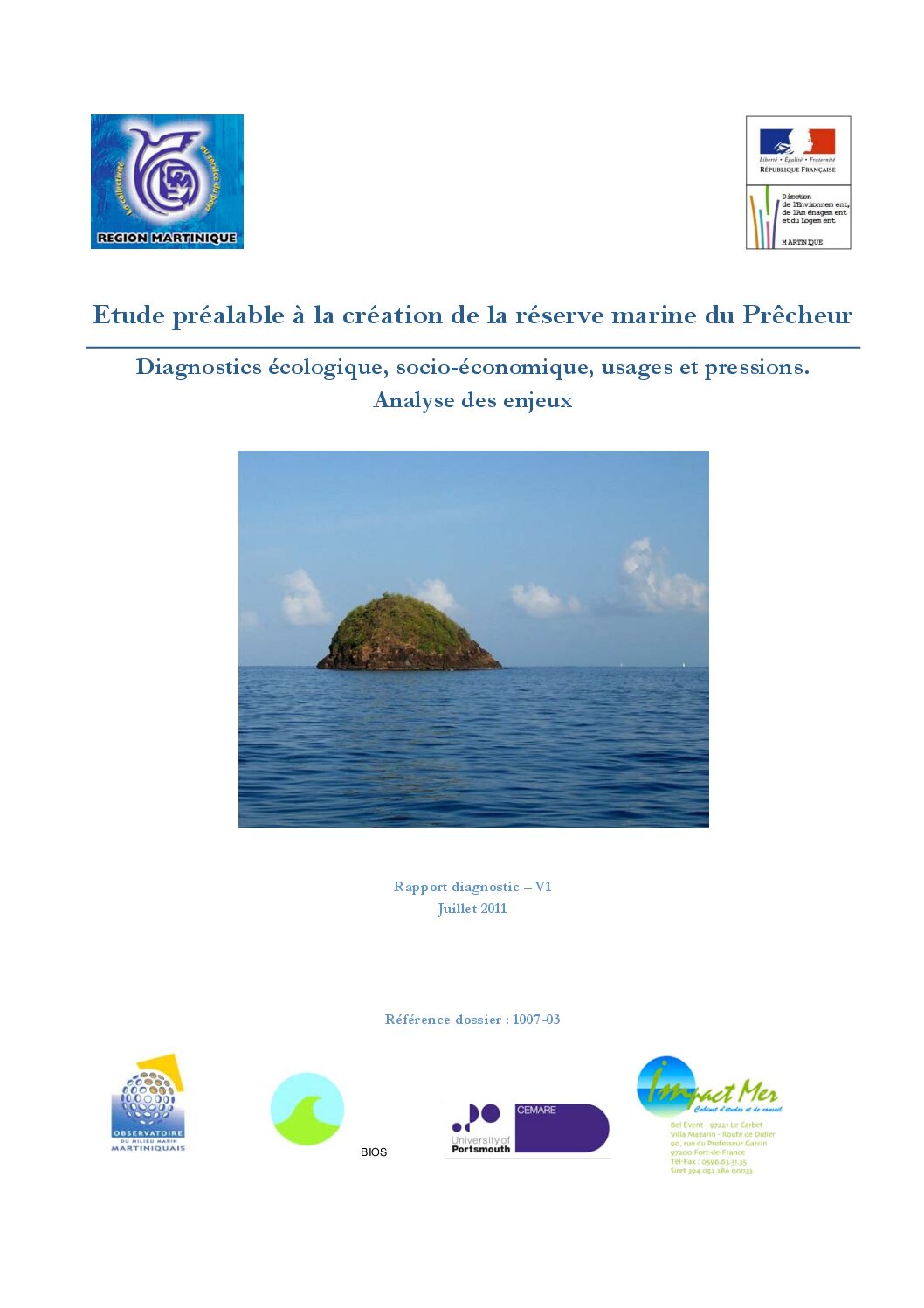 Les études réalisées par l’OMMM (DIREN – IFRECOR) (évaluation écologique de la zone au niveau des fonds marins, du peuplement ichtyologique, évaluation socio-économique concernant les activités et usages, les potentialités économiques pour la pêche professionnelle et le tourisme) ont permis d’arrêter le choix de la commune du Prêcheur.