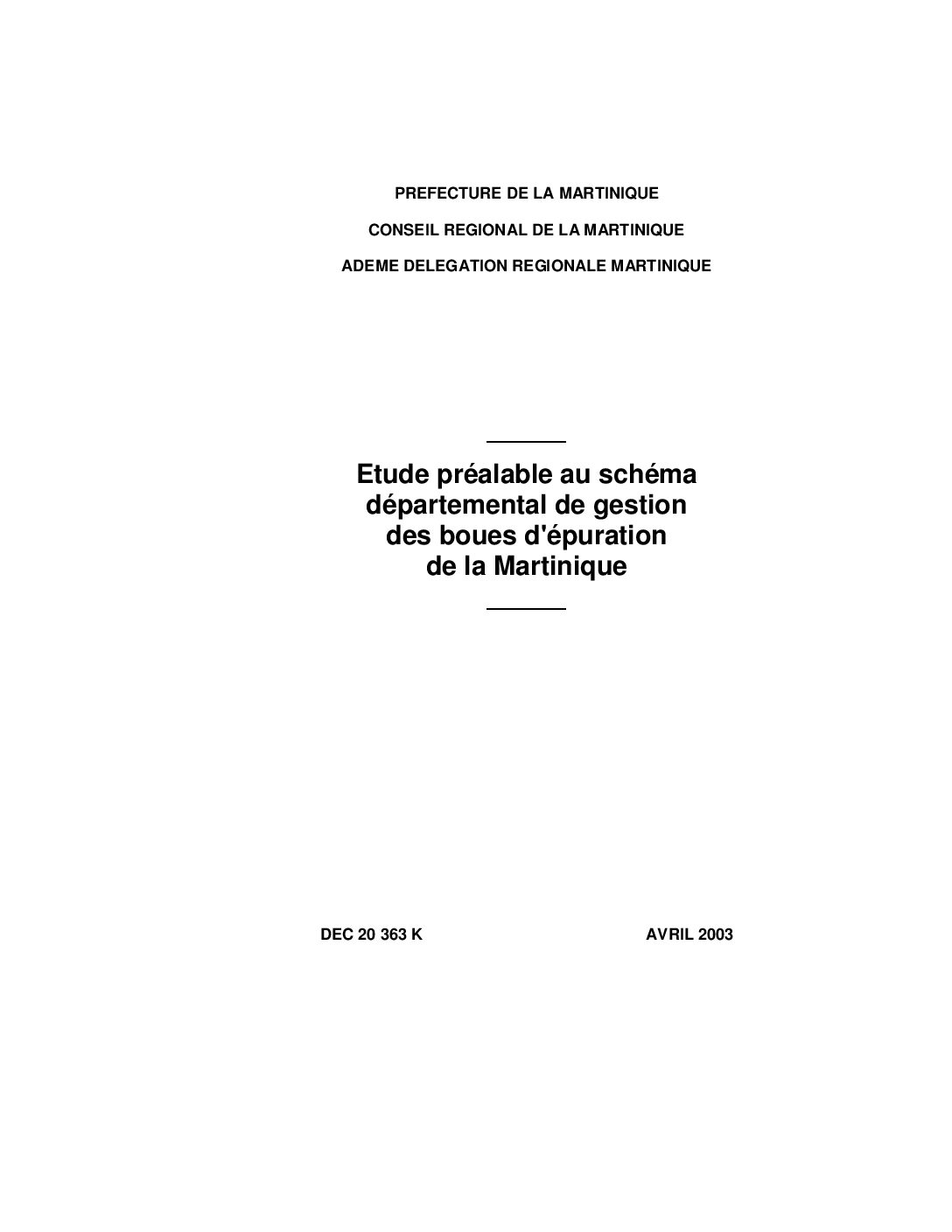 Ce document présente le cadre réglementaire et les techniques de valorisation et d’élimination des boues d’épuration, l’état des lieux de la production et de l’élimination des boues de Martinique, l’estimation de la production de boues, les potentialités de conditionnement, d’élimination ou de valorisation de la Martinique.
