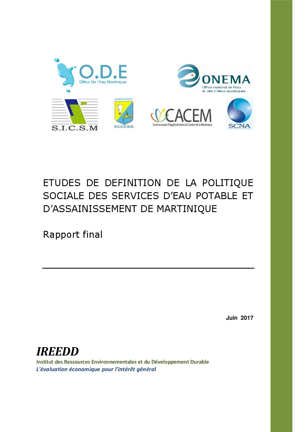 ETUDES DE DEFINITION DE LA POLITIQUE SOCIALE DES SERVICES D’EAU POTABLE ET D’ASSAINISSEMENT DE MARTINIQUE – Rapport final