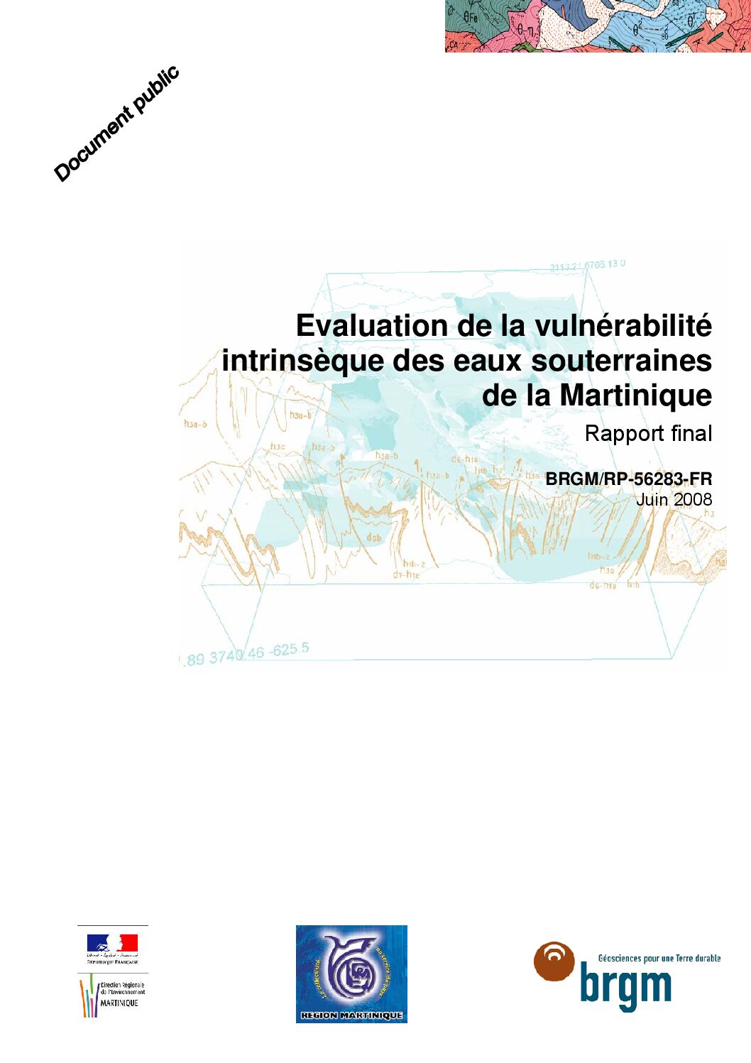 L’objectif du présent rapport est de contribuer à améliorer significativement l’évaluation de la vulnérabilité intrinsèque de la qualité des eaux souterraines de la Martinique, et de la porter à connaissance en vue de la mise en valeur des eaux souterraines.