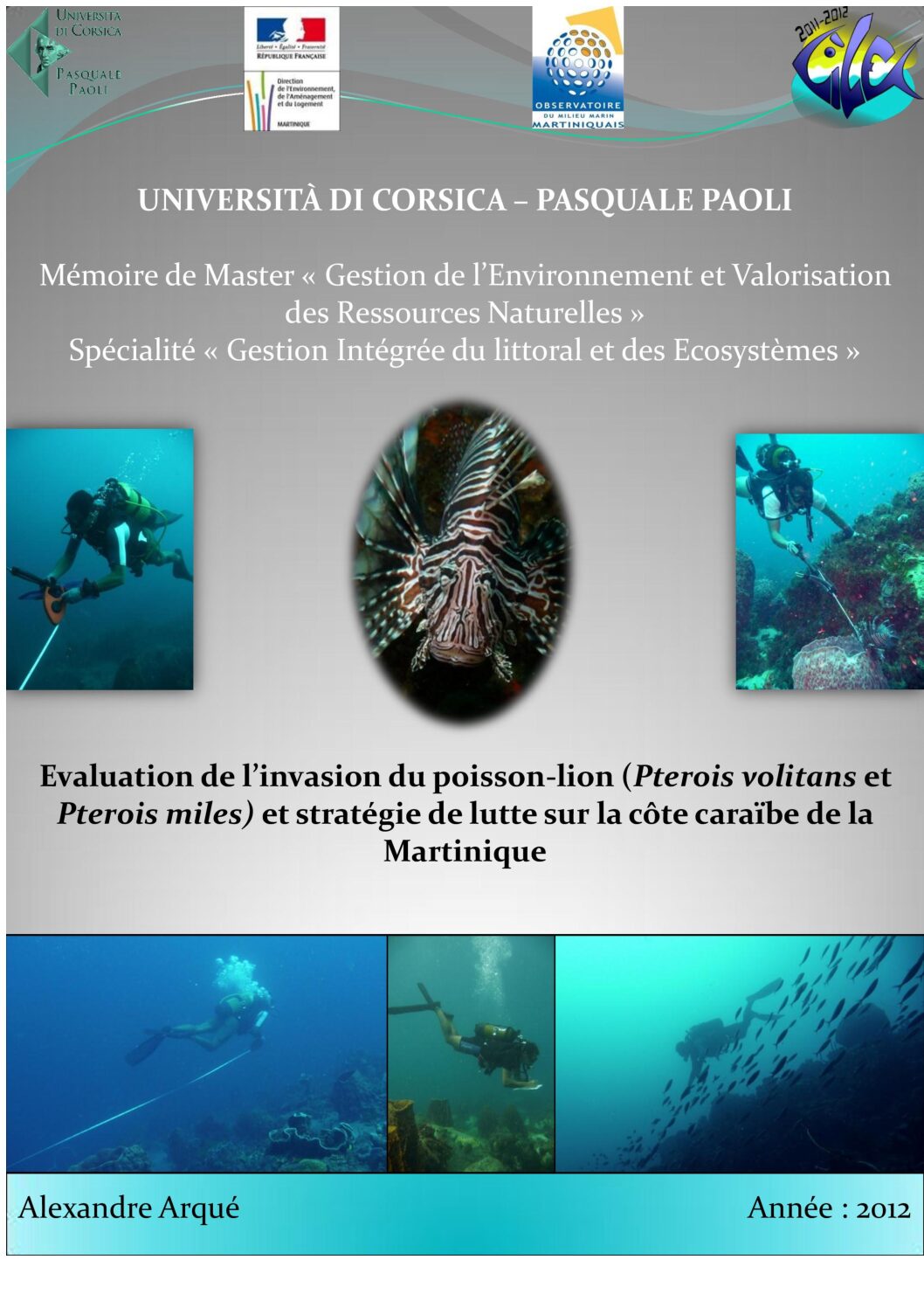 Le présent rapport s’attache à présenter la situation actuelle de l’invasion du poisson-lion dans les Caraïbes et présente les stratégies de lutte en Martinique.