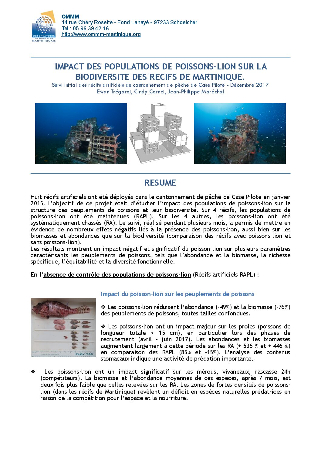 L’objectif de ce projet était d’étudier l’impact des populations de poissons-lion sur la structure des peuplements de poissons et leur biodiversité. Le suivi réalisé pendant plusieurs mois, a permis de mettre en évidence de nombreux effets négatifs liés à la présence des poissons-lion, aussi bien sur les biomasses et abondances que sur la biodiversité.