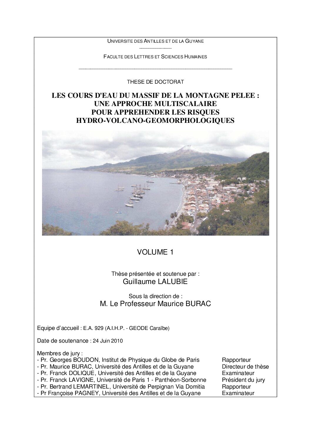 Cette étude menée avec une constante recherche d’application dans le domaine de la prévention des risques, propose des stratégies pour mieux appréhender les aléas sur le massif de la Montagne Pelée.