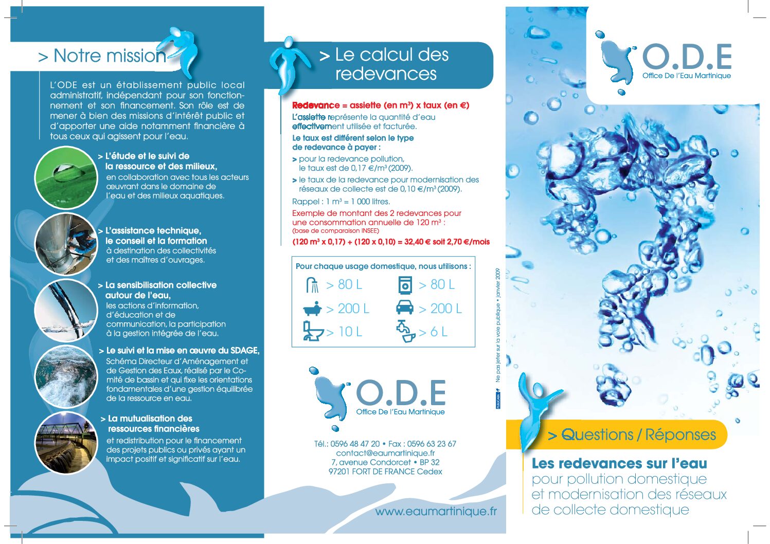 Plaquette de présentation des redevances pollution domestique et modernisation des réseaux de collecte domestique prélevées par l’ODE Martinique.