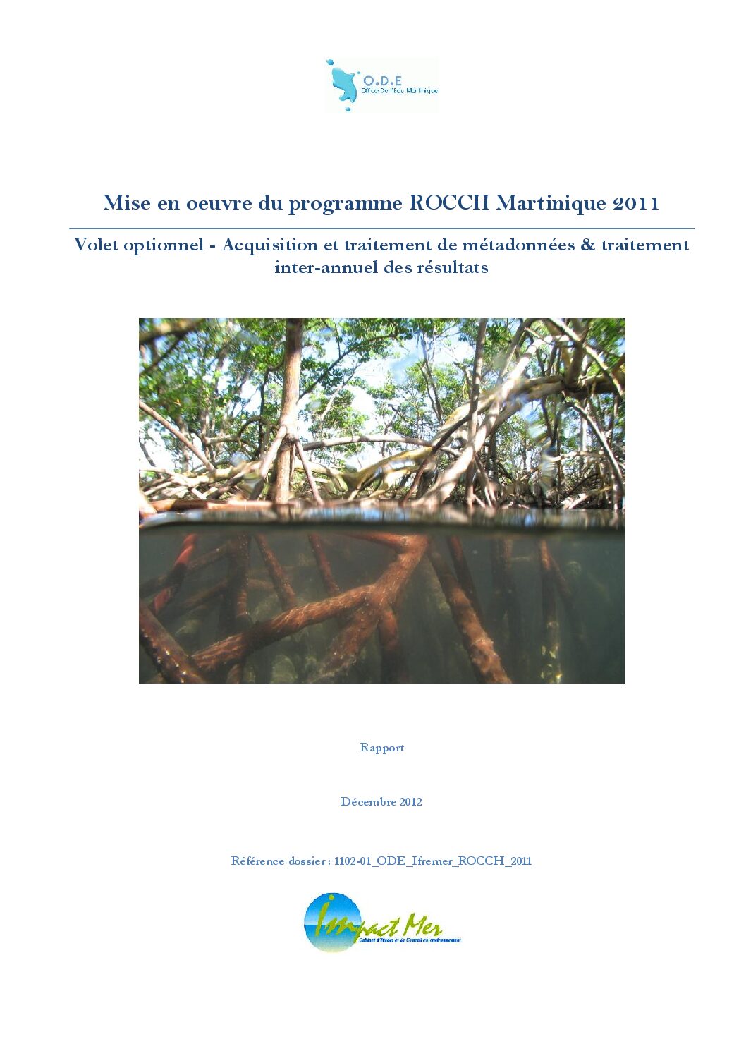 Le présent document constitue le rendu attendu dans le cadre de l’étude « Mise en oeuvre du programme ROCCH Martinique 2011 » lancée par l’ODE Martinique en partenariat avec l’Ifremer. Il comporte une brève analyse des données collectées depuis 2009, ainsi que le volet optionnel « acquisition de métadonnées ».