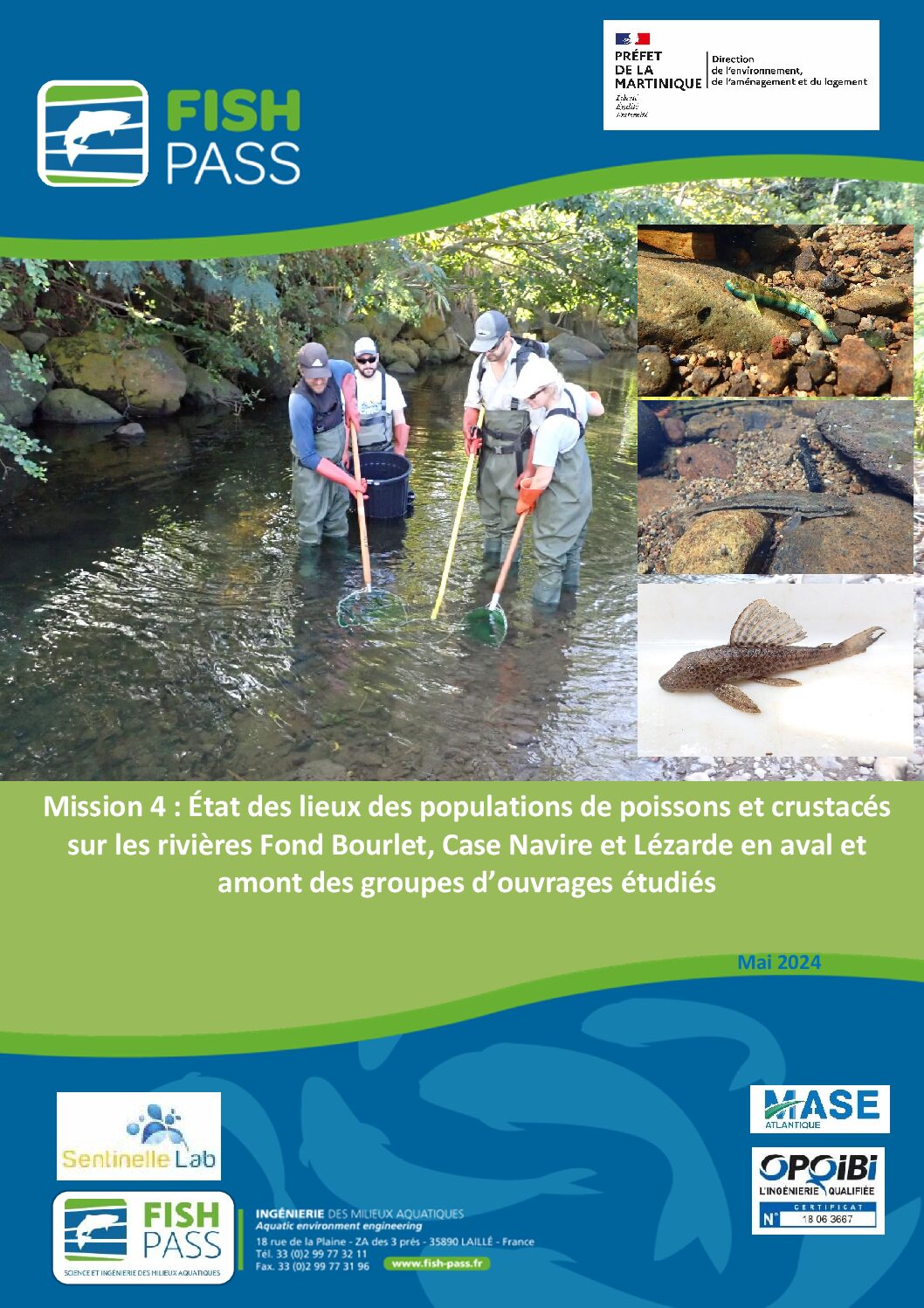 Ce rapport présente l’évaluation des peuplements piscicoles et de macro-crustacés sur les rivières Fond Bourlet, Case Navire et Lézarde, en Martinique. L’étude, réalisée en amont et en aval des ouvrages hydrauliques, vise à analyser l’impact des infrastructures sur la continuité écologique et la répartition des espèces. La méthodologie repose sur des pêches électriques conformes aux normes environnementales et permet d’établir un diagnostic écologique des milieux aquatiques étudiés.