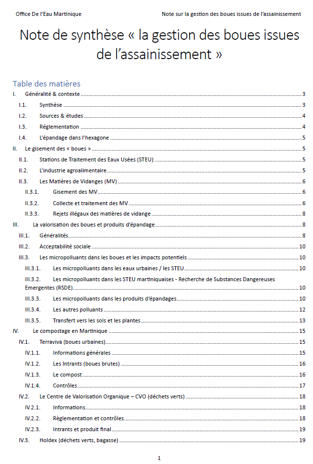 En Martinique 100 % des boues de STEU ainsi que des matières de vidanges sont co-compostés avec des déchets verts à l’usine de Terraviva. Il n’y a pas de pratique d’épandage direct des boues de STEU. Le compost est utilisé sur plusieurs exploitations agricoles de canne à sucre.