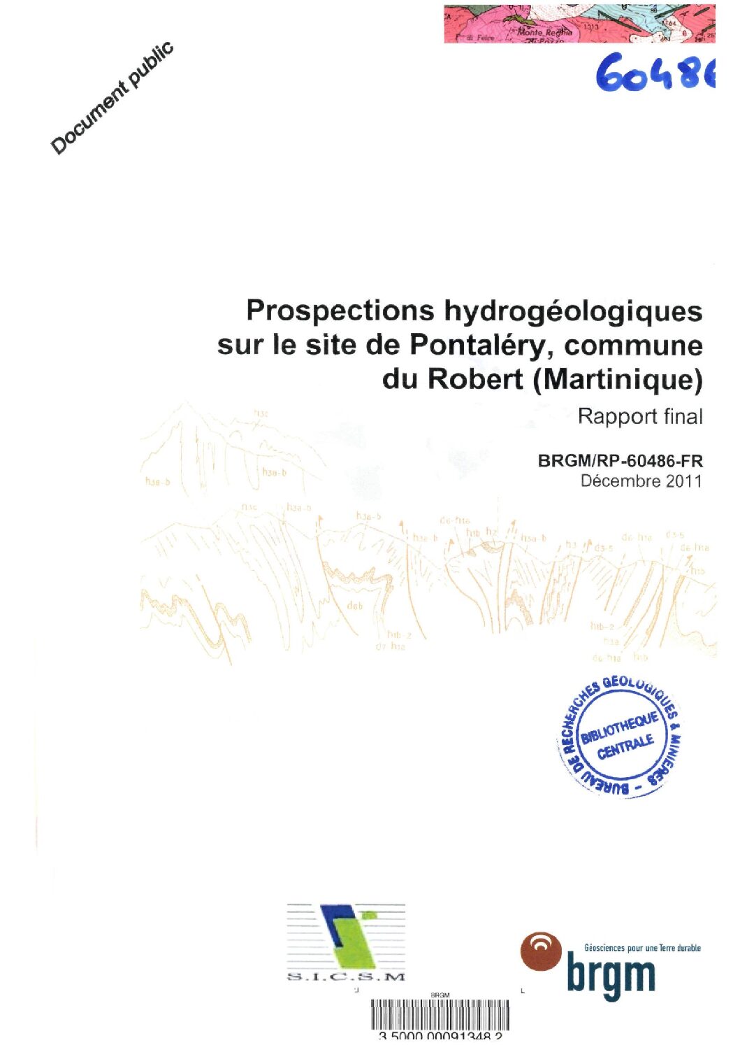 Le SICSM souhaite diversifier et augmenter les ressources en eau disponibles sur son territoire, par l’exploitation des eaux souterraines. Il a ainsi été confié au BRGM la conduite d’un programme de reconnaissance des eaux souterraines du centre et du sud de la Martinique. Le présent rapport rend compte des prospections hydrogéologiques menées en 2011 sur le site de Pontaléry au Robert.