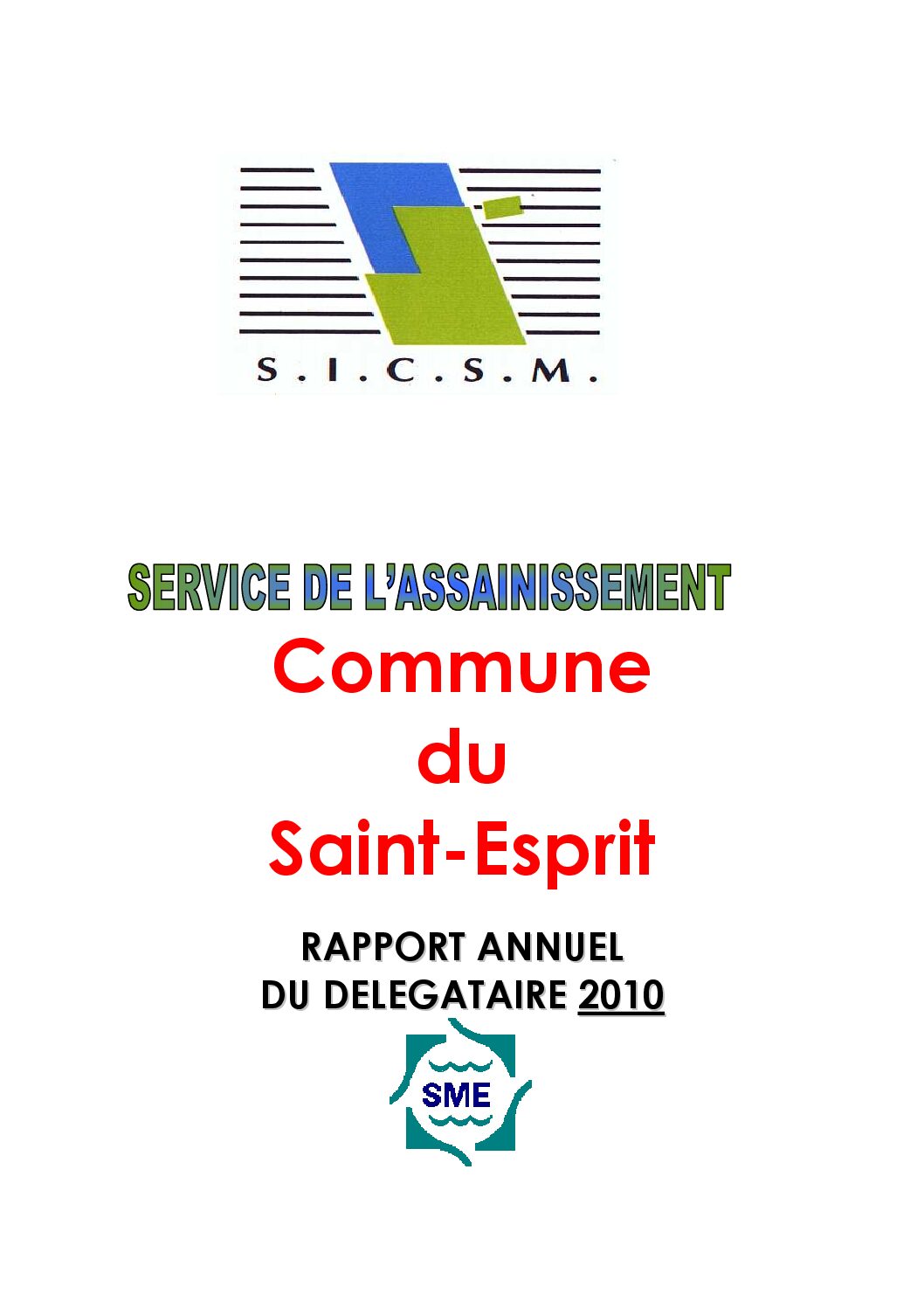 Le rapport annuel du délégataire (RAD) du service public d’assainissement de la ville de Saint-Esprit au SICSM, exercice 2010.