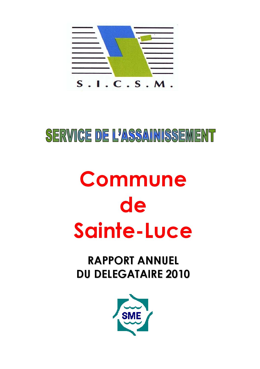 Le rapport annuel du délégataire (RAD) du service public d’assainissement de la commune de St Luce au SICSM, exercice 2010.