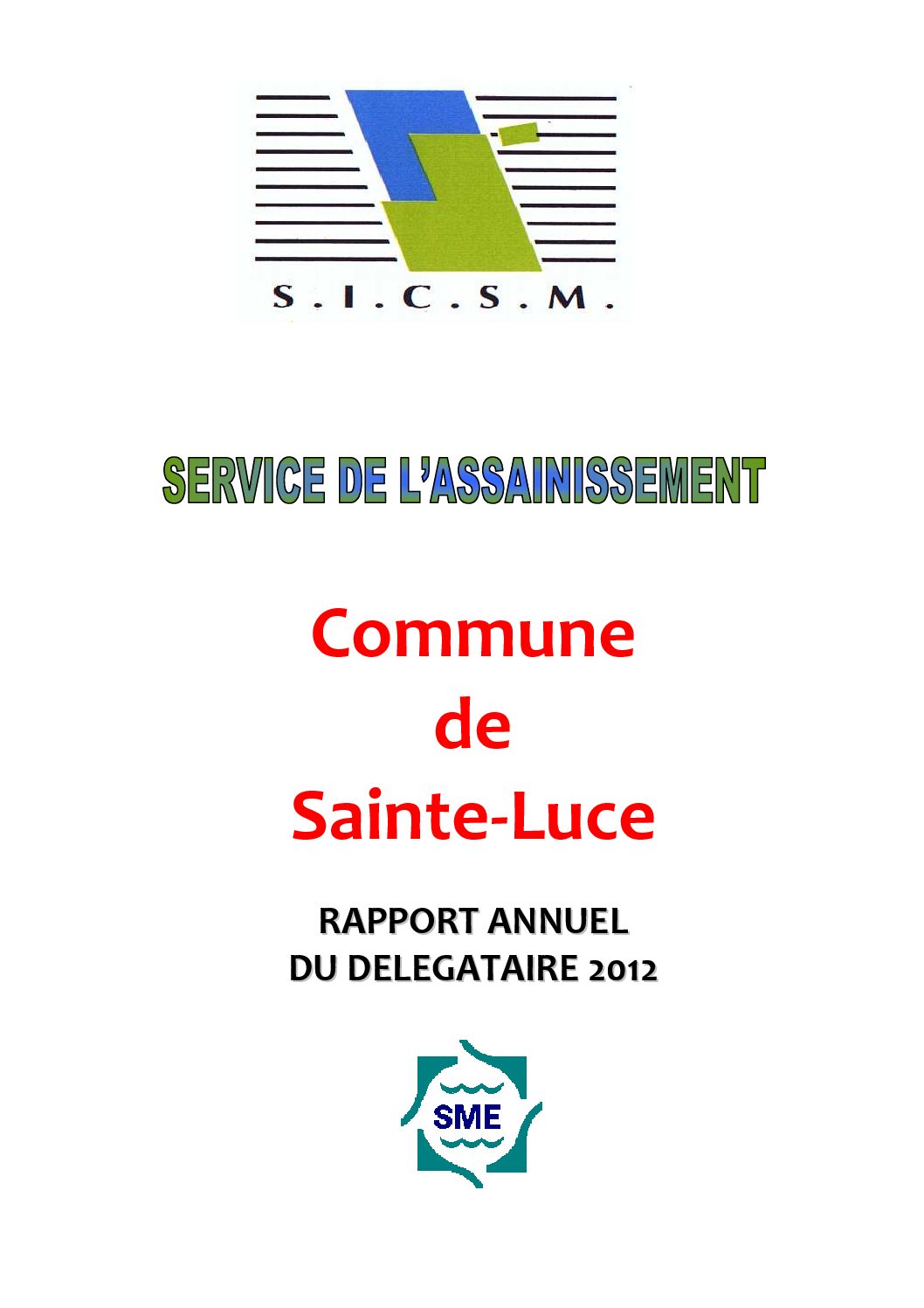 Le rapport annuel du délégataire (RAD) du service public d’assainissement de la commune de Sainte-Luce au SICSM, exercice 2012.