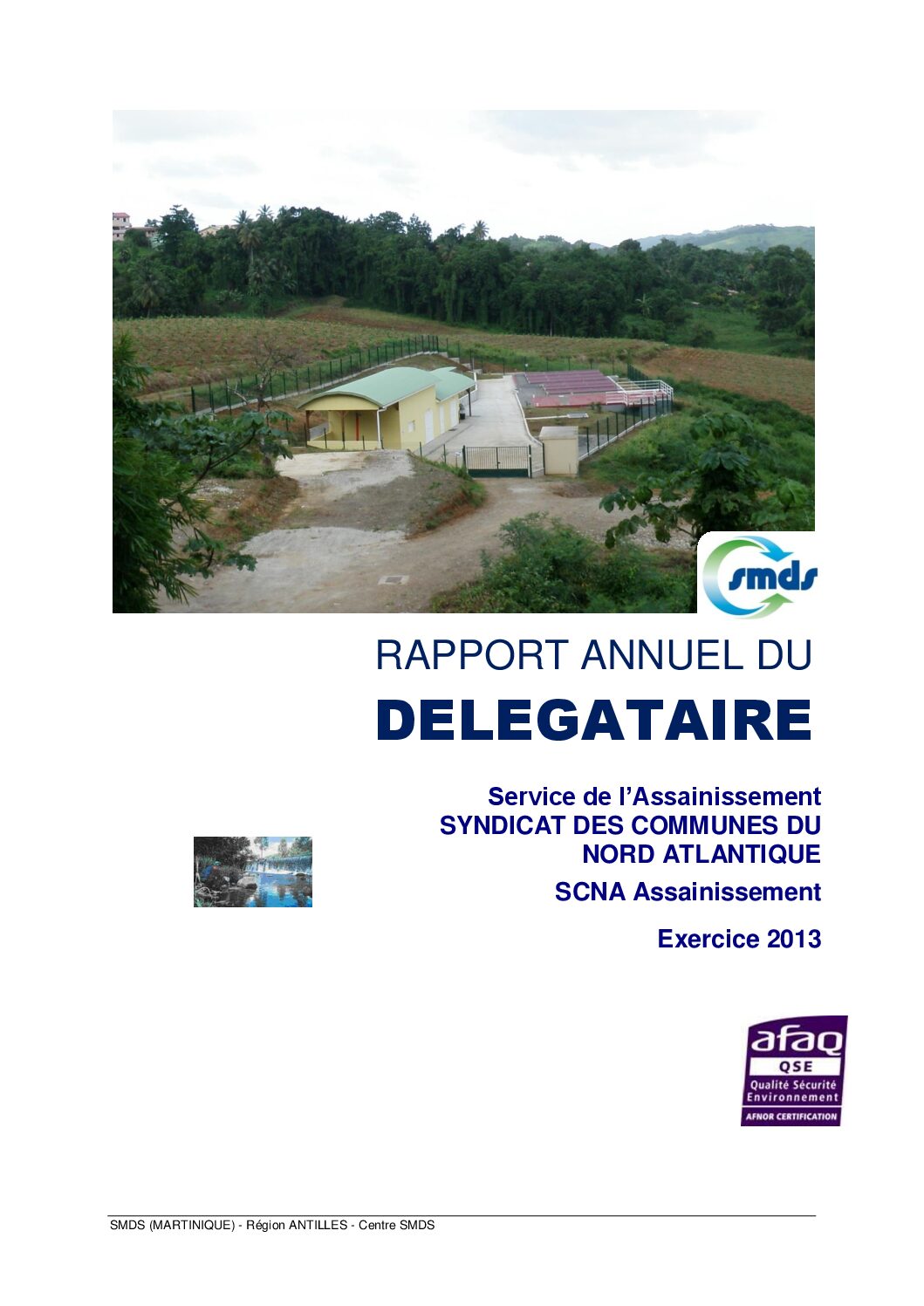 Le Rapport Annuel du Délégataire du service public d’assainissement du SCNA (Syndicat des Communes du Nord Atlantique) – Exercice 2013
