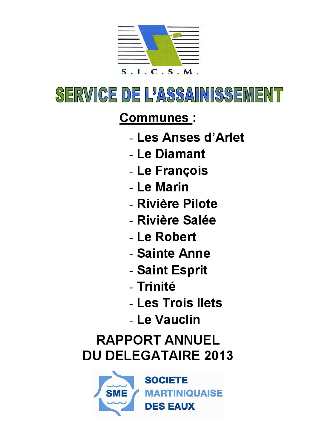 Le rapport annuel du délégataire (RAD) du service public d’assainissement du SICSM (Syndicat intercommunal du Centre et du Sud de la Martinique) – Exercice 2013