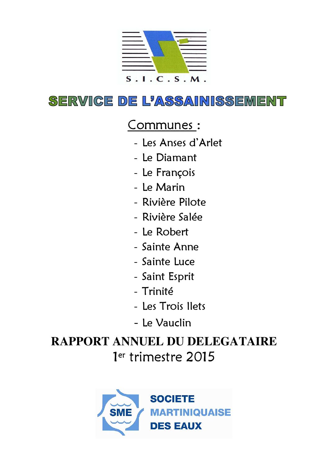 Le Rapport Annuel du Délégataire du service public d’assainissement du SICSM (Syndicat intercommunal du Centre et du Sud de la Martinique) – Exercice 2015.