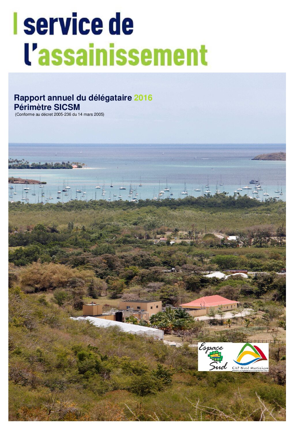 Le Rapport Annuel du Délégataire du service public d’assainissement du SICSM (Syndicat intercommunal du Centre et du Sud de la Martinique) – Exercice 2015.