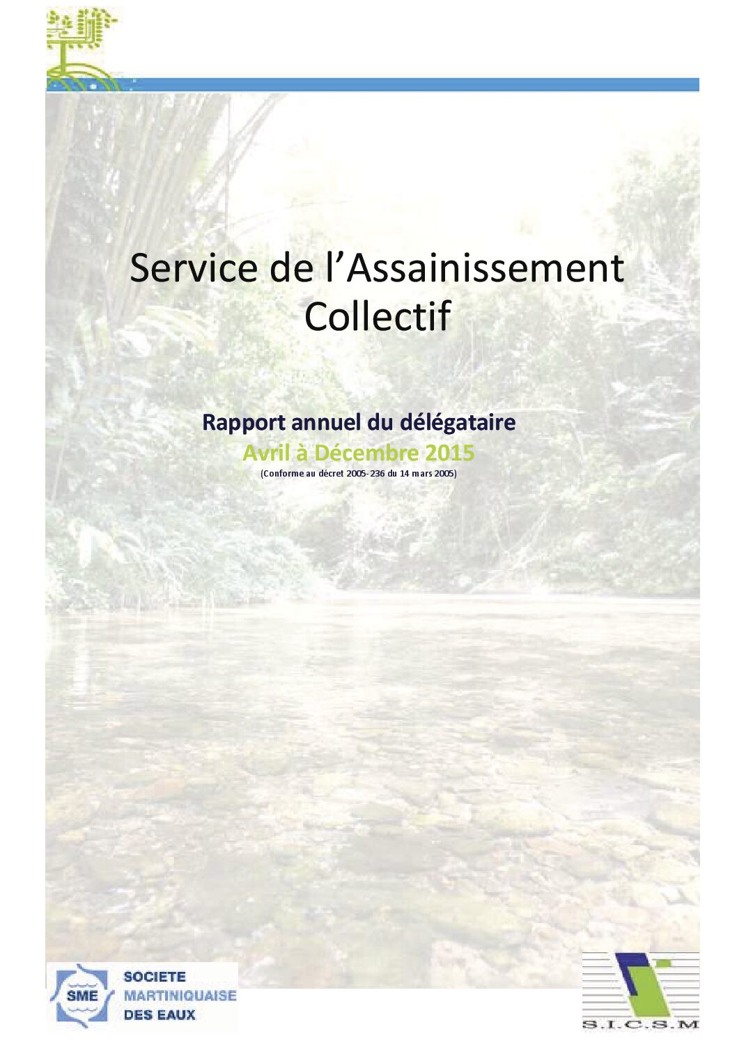 Le Rapport Annuel du Délégataire du service public d’assainissement du SICSM (Syndicat intercommunal du Centre et du Sud de la Martinique) – Exercice 2015.
