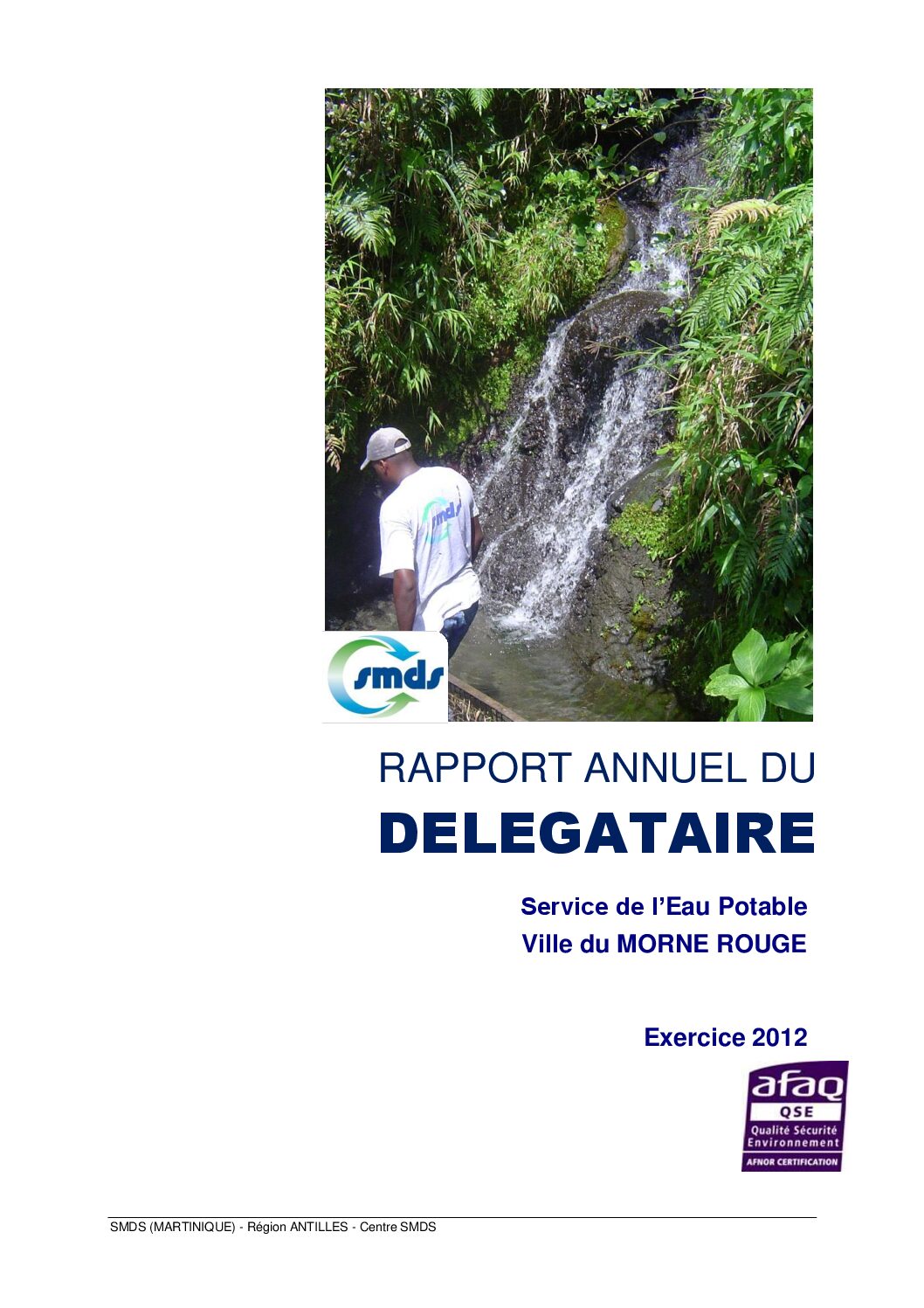 Le rapport annuel du délégataire (RAD) du service public d’eau potable de la commune du Morne-Rouge – Exercice 2012.