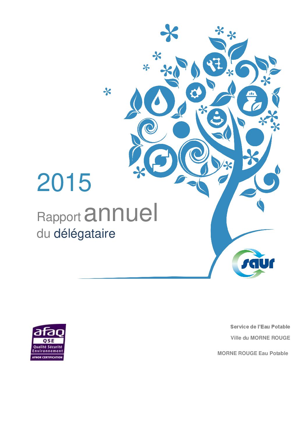 Le rapport annuel du délégataire (RAD) du service public d’eau potable de la commune du Morne-Rouge – Exercice 2015.