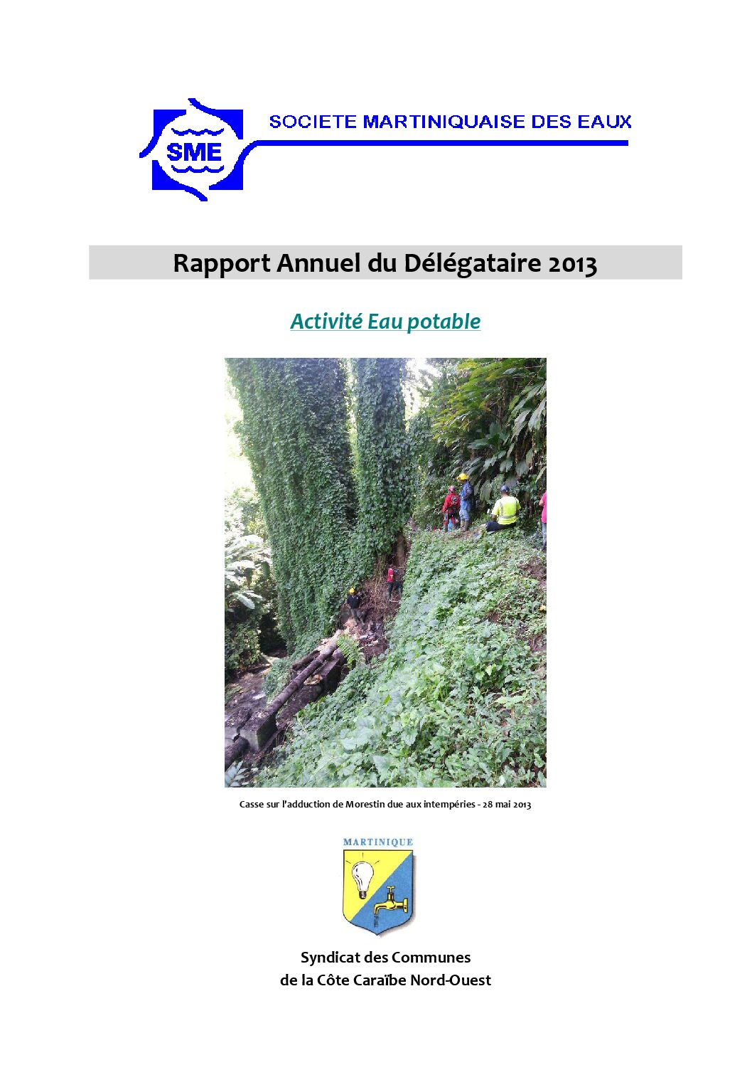 Le rapport annuel du délégataire (RAD) du service public de l’eau potable du SCCCNO (Syndicat des Communes de la Côte Caraïbe Nord-Ouest) – Exercice 2013