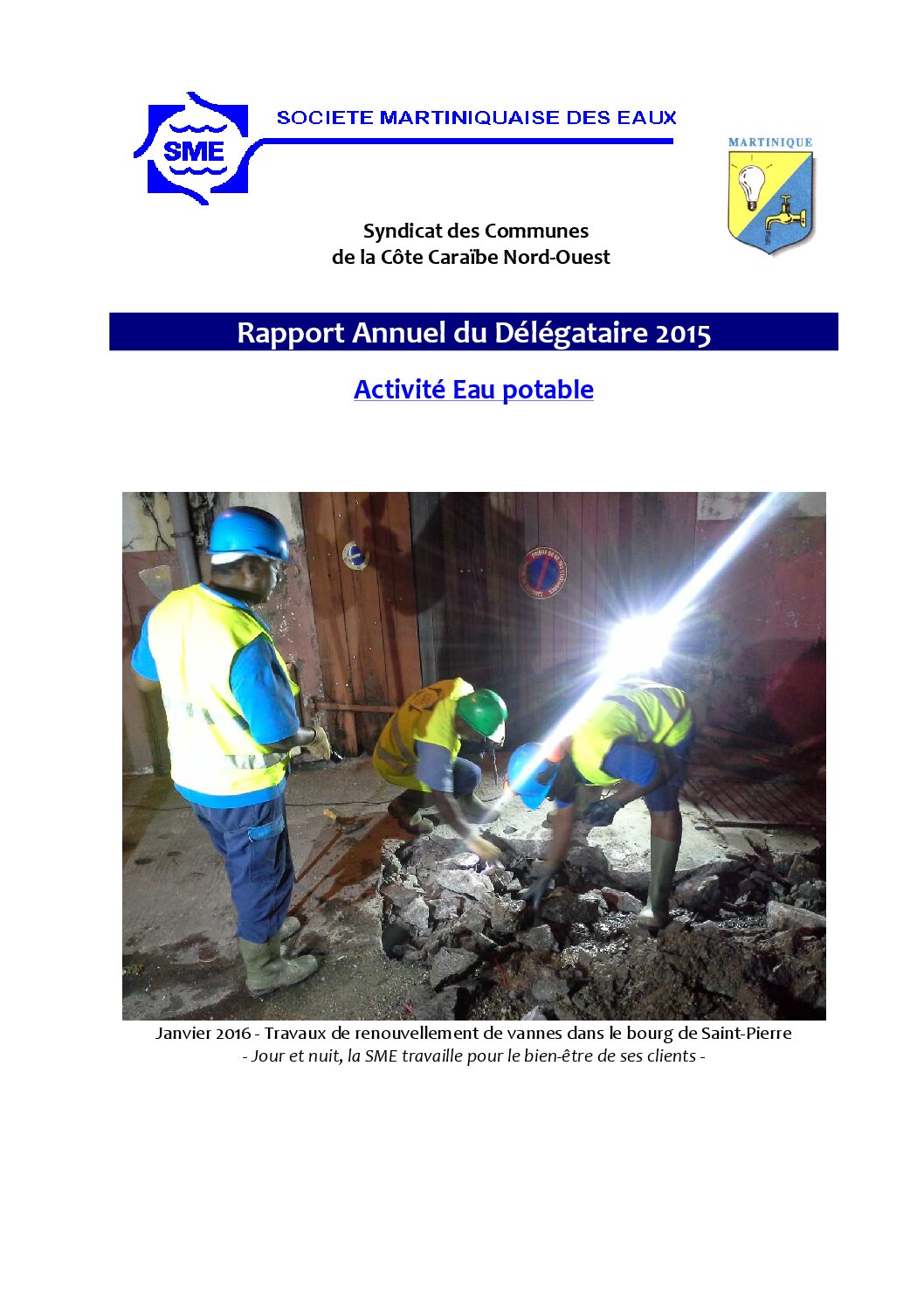 Le Rapport Annuel du Délégataire du service public d’alimentation en eau potable du SCCCNO (Syndicat des Communes de la Côte Caraïbe Nord-Ouest) – Exercice 2015.
