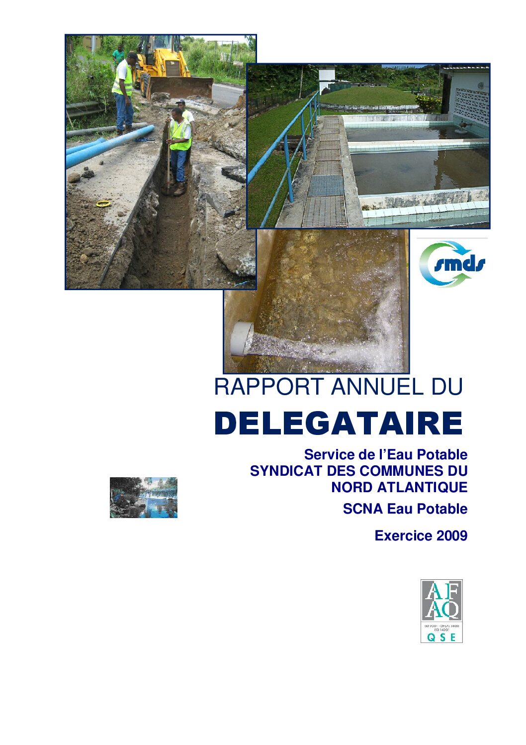 Le rapport annuel du délégataire (RAD) du service public d’alimentation en eau potable du SCNA (Syndicat des communes du Nord Atlantique), exercice 2009.