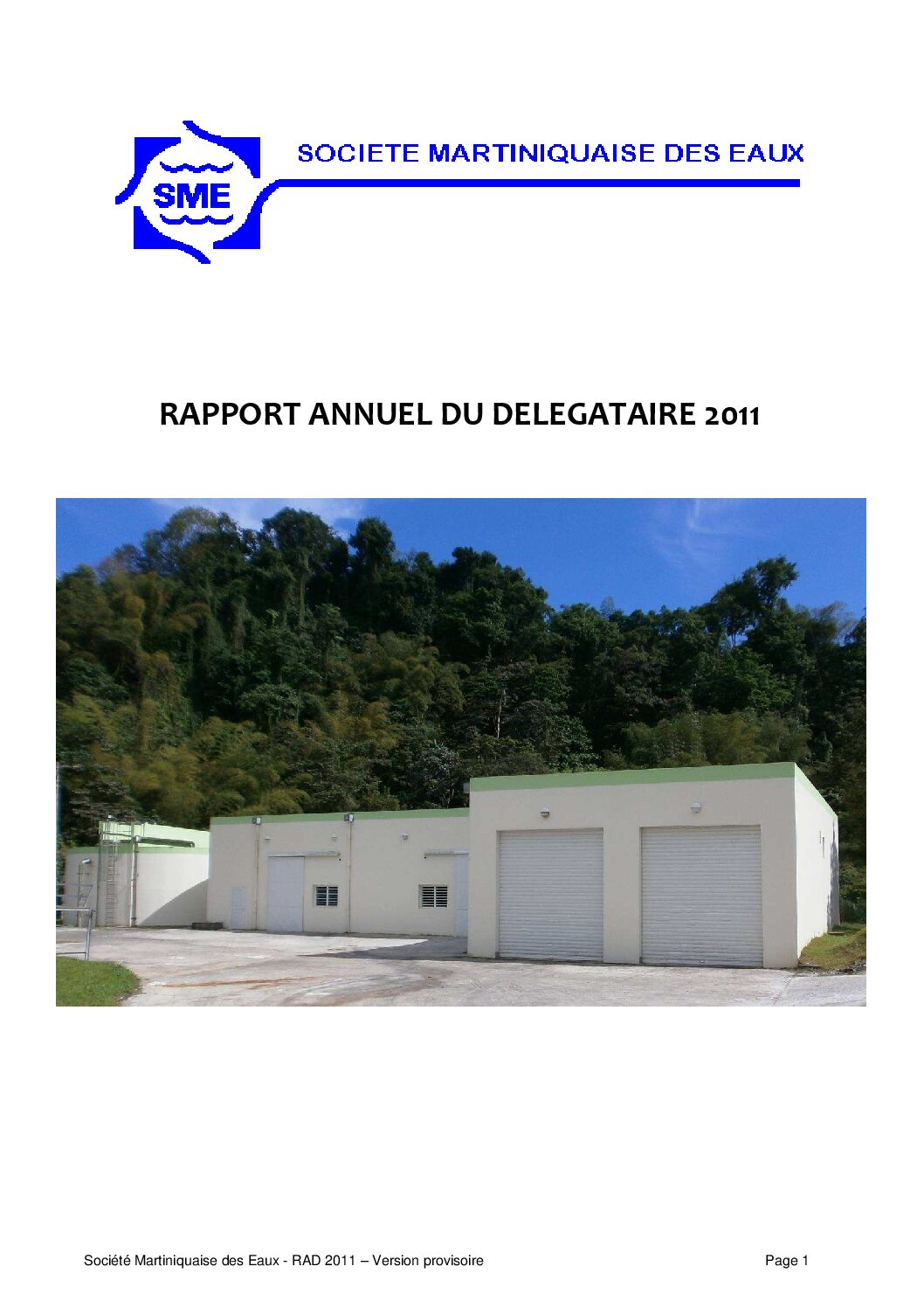 Le rapport annuel du délégataire (RAD) du service public d’alimentation en eau potable du SICSM (Syndicat Intercommunal du Centre et du Sud de la Martinique) pour l’année 2011.