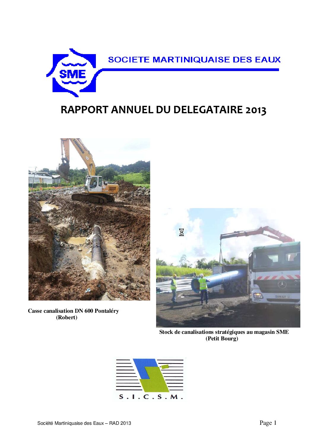 Le rapport annuel du délégataire (RAD) du service public d’eau potable du SICSM (Syndicat intercommunal du Centre et du Sud de la Martinique) – Exercice 2013